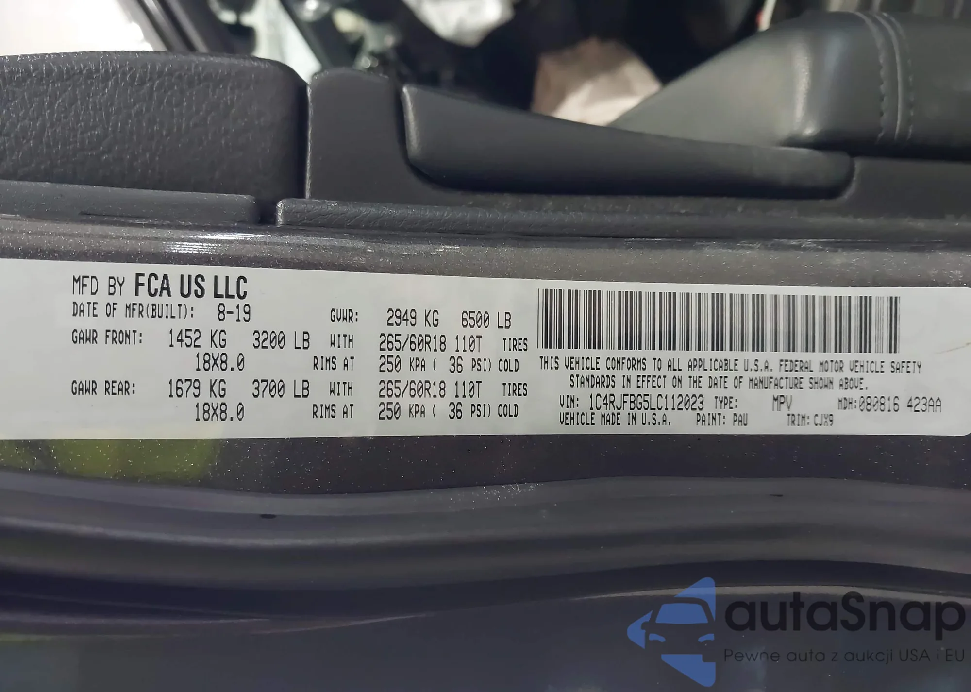 • VIN 1C4RJFBG5LC112023