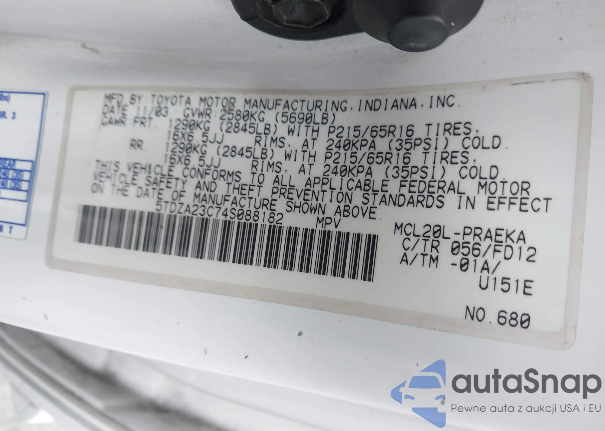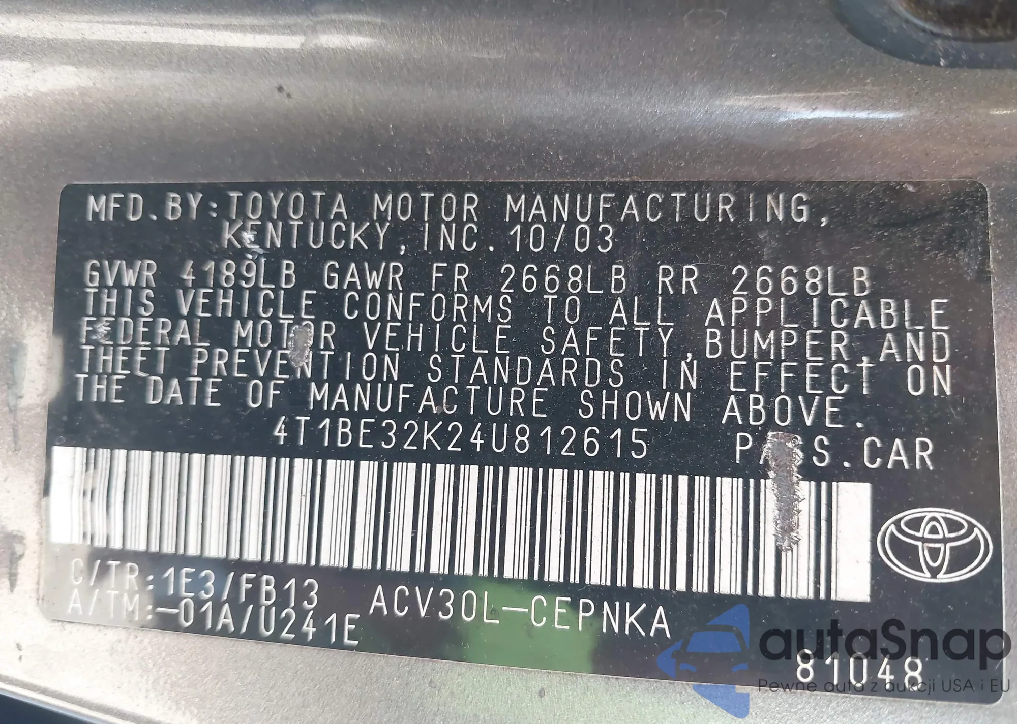 • VIN 4T1BE32K24U812615