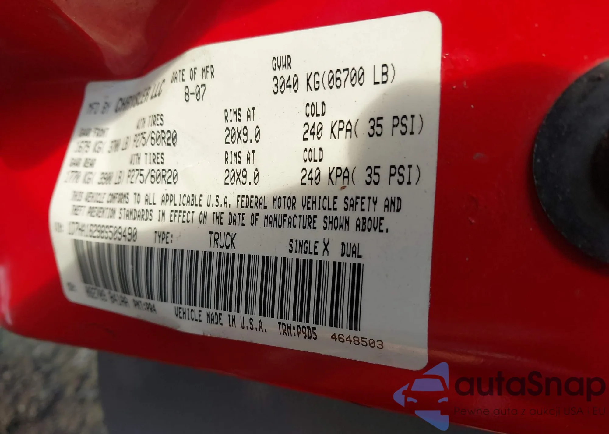 • VIN 1D7HA18298S509490