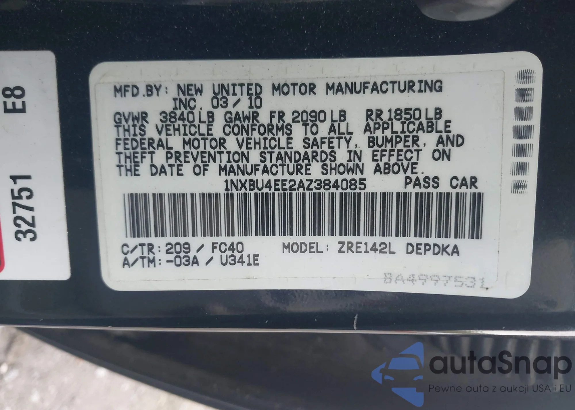LOT: 43384135 VIN: 1NXBU4EE2AZ384085