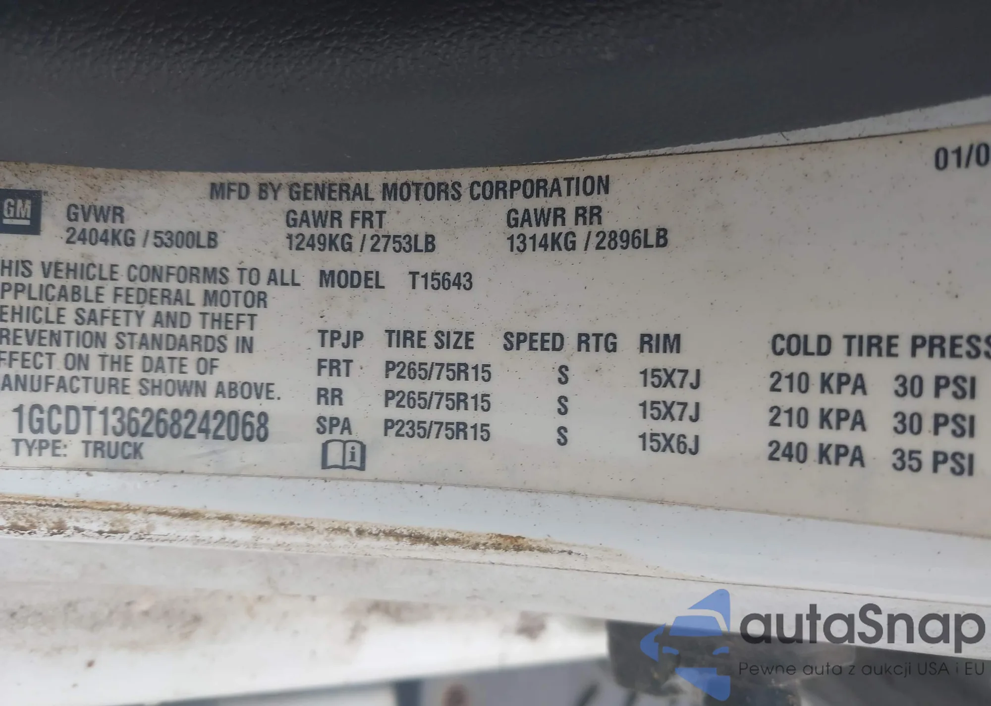 LOT: 43341252 VIN: 1GNDT13S552134212