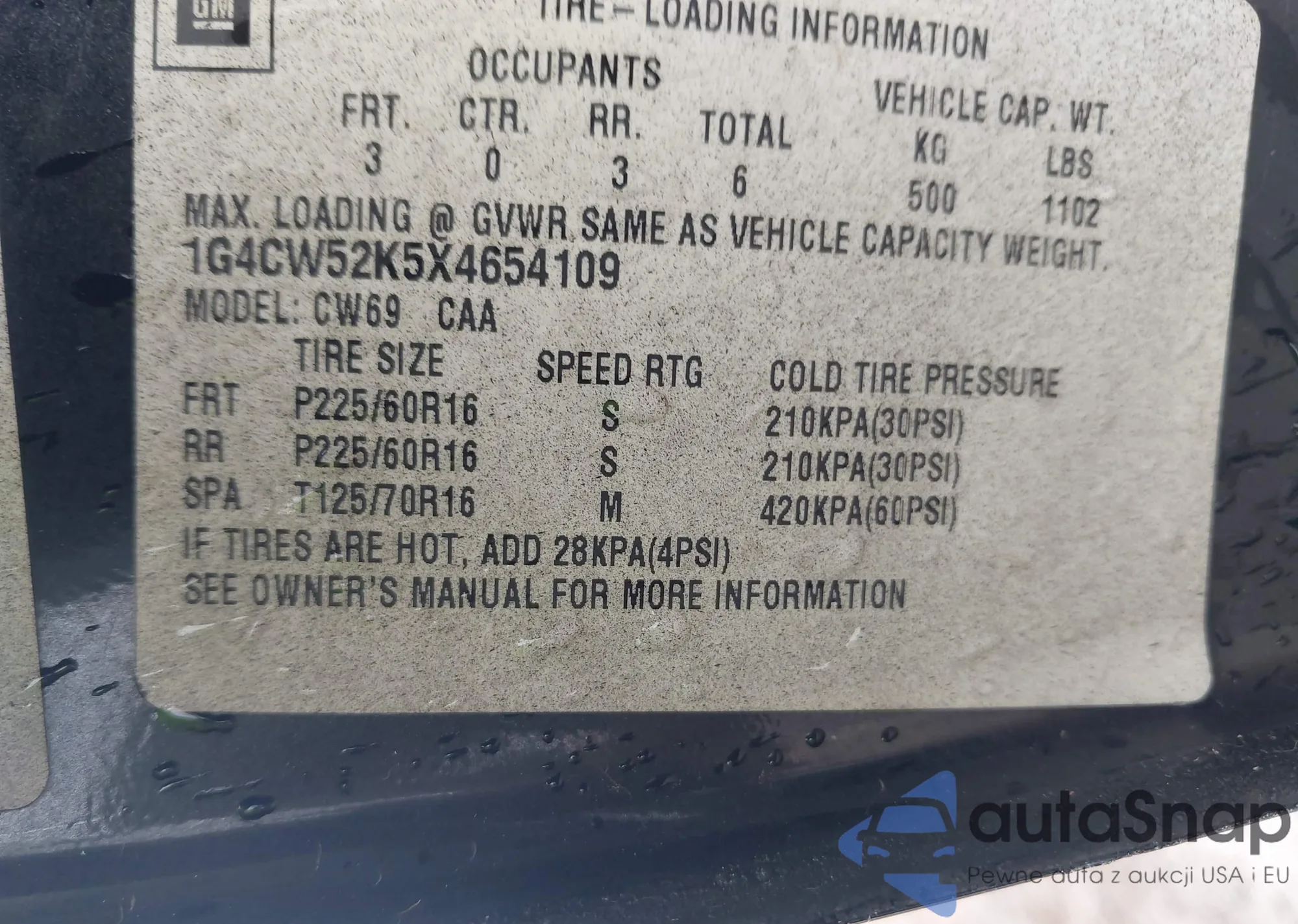 • VIN 5GAET13M752236627