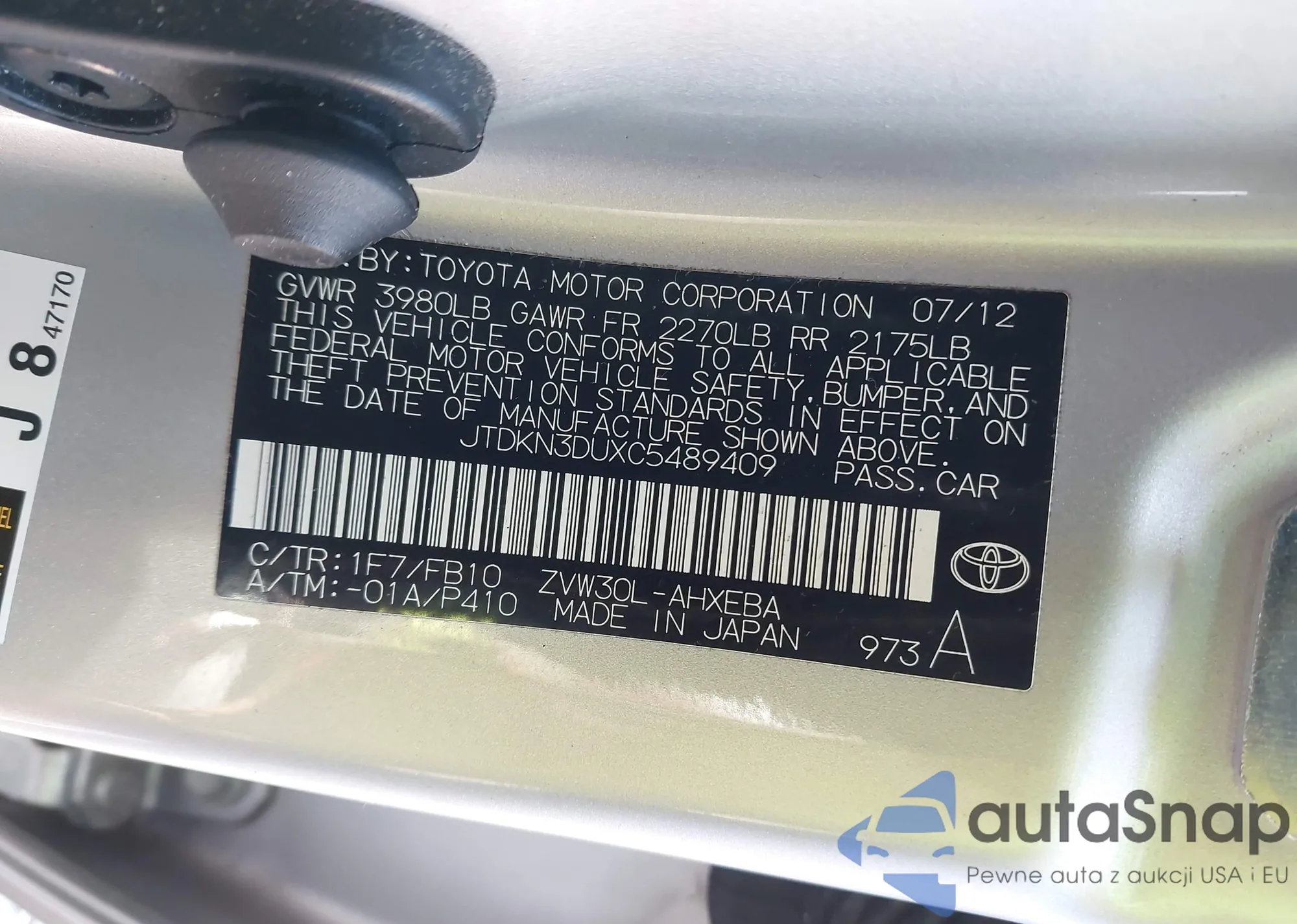 LOT: 43233345 VIN: 5FNYF4H71CB043195