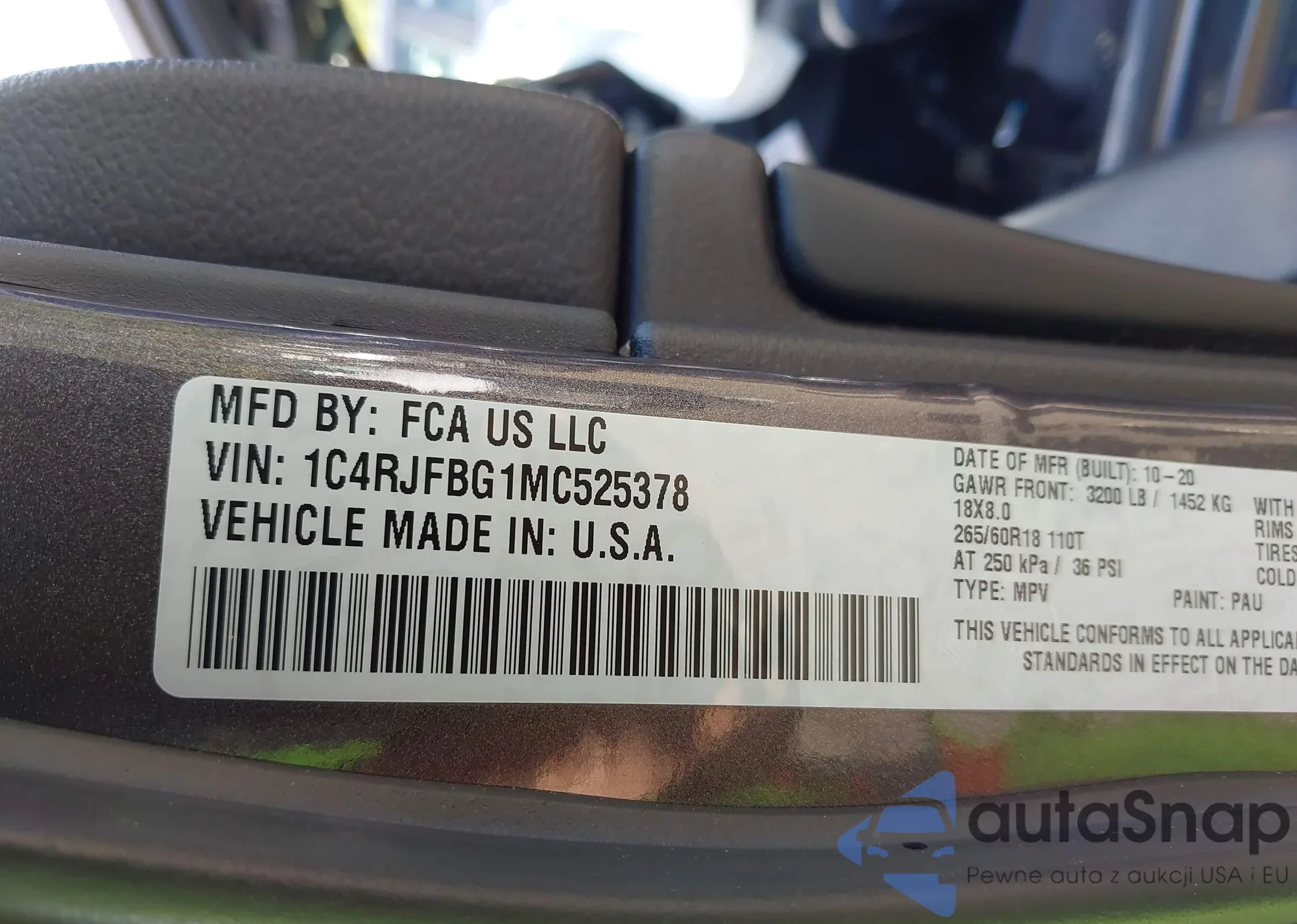 • VIN 1C4RJFBG1MC525378