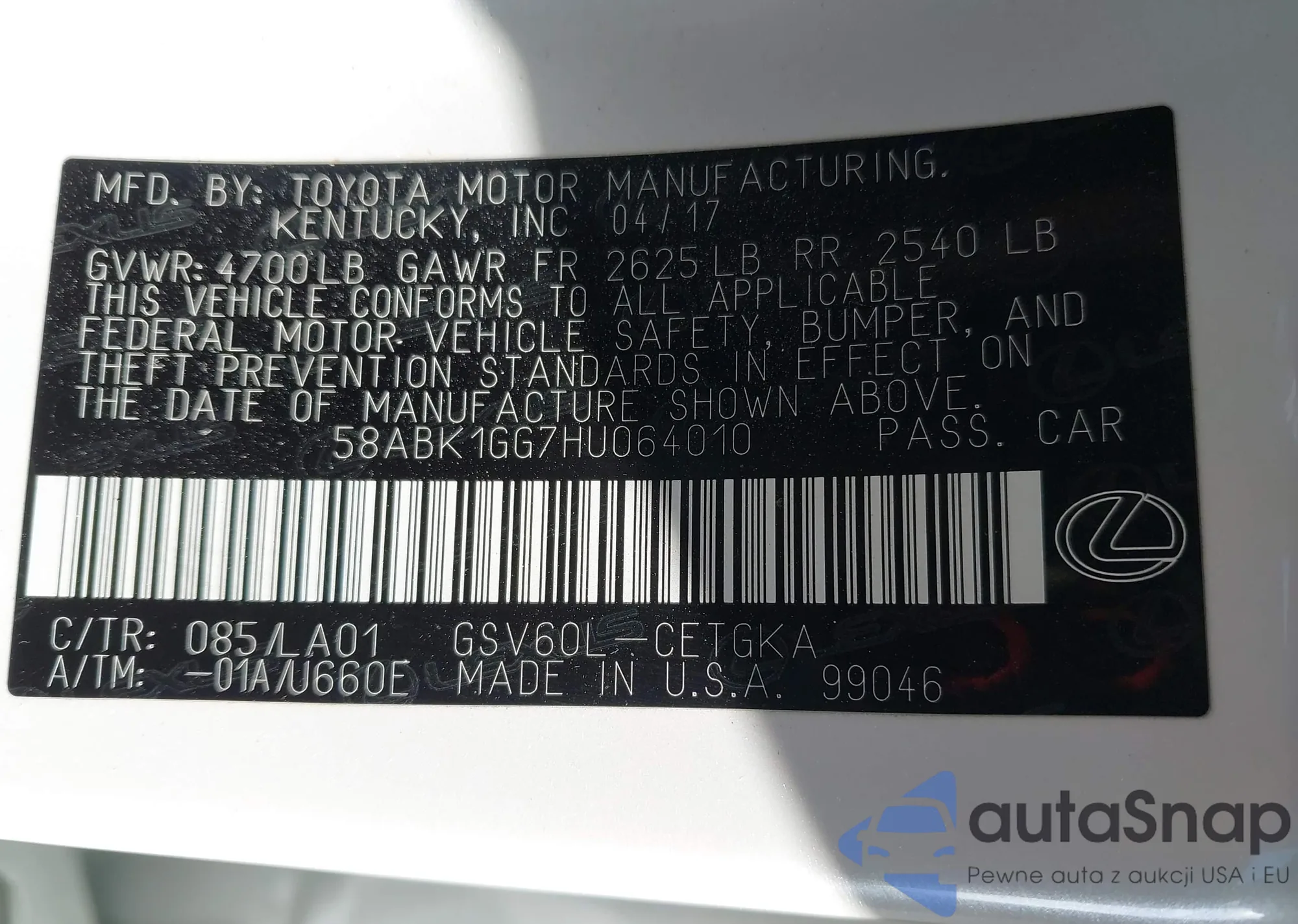 LOT: 43438460 VIN: 4T1BF28B74U374317