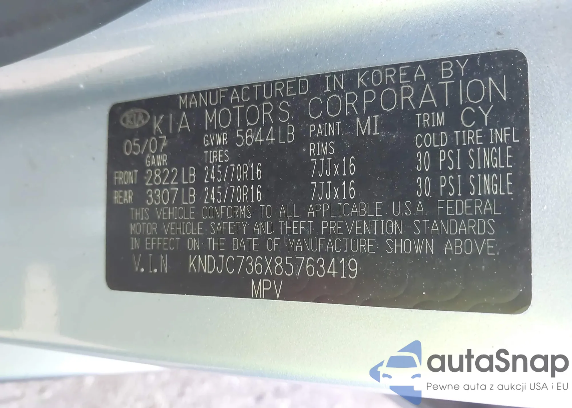 LOT: 43371998 VIN: KNDJC736X85763419
