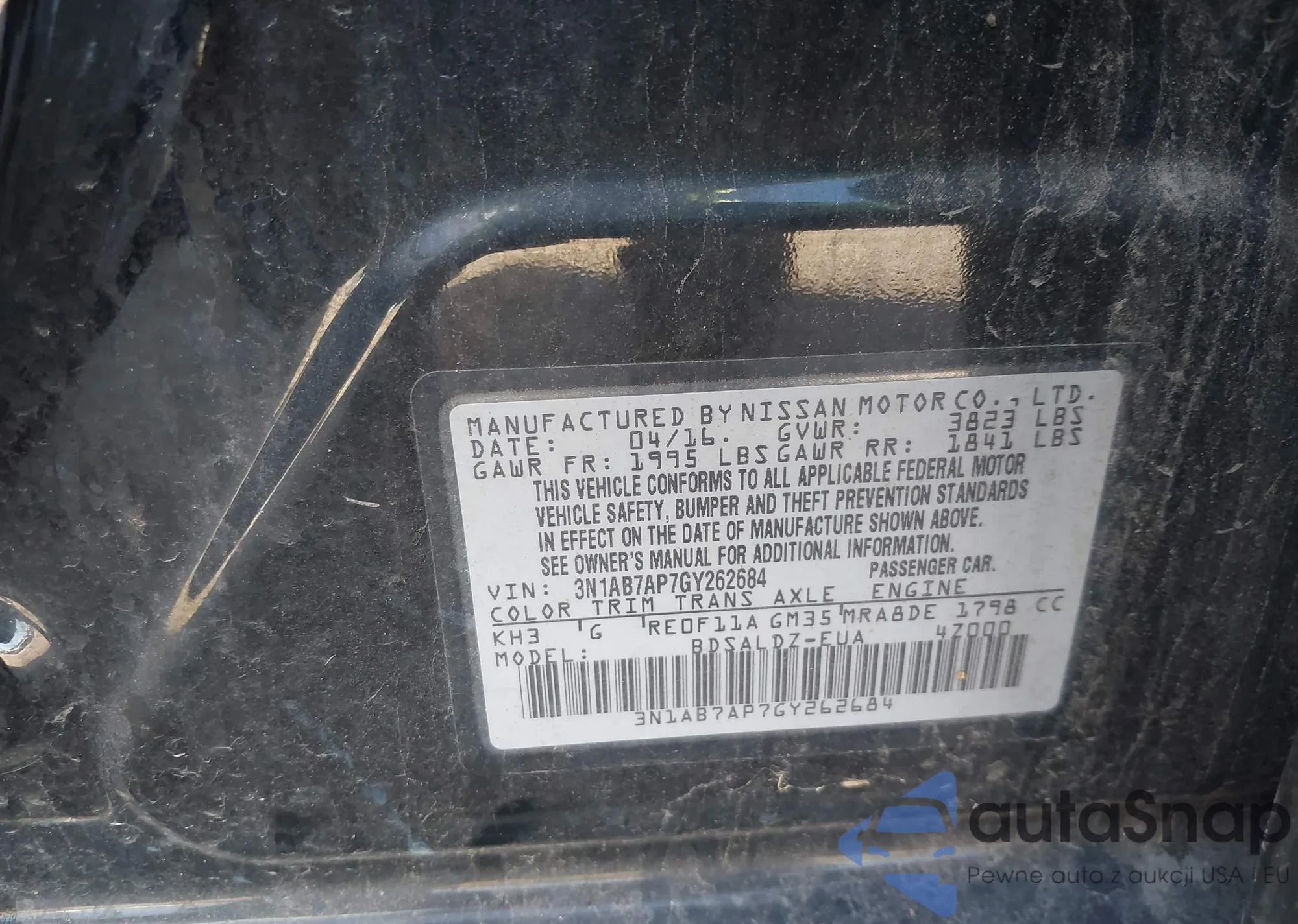 LOT: 43407374 VIN: 3N1AB7AP7GY262684