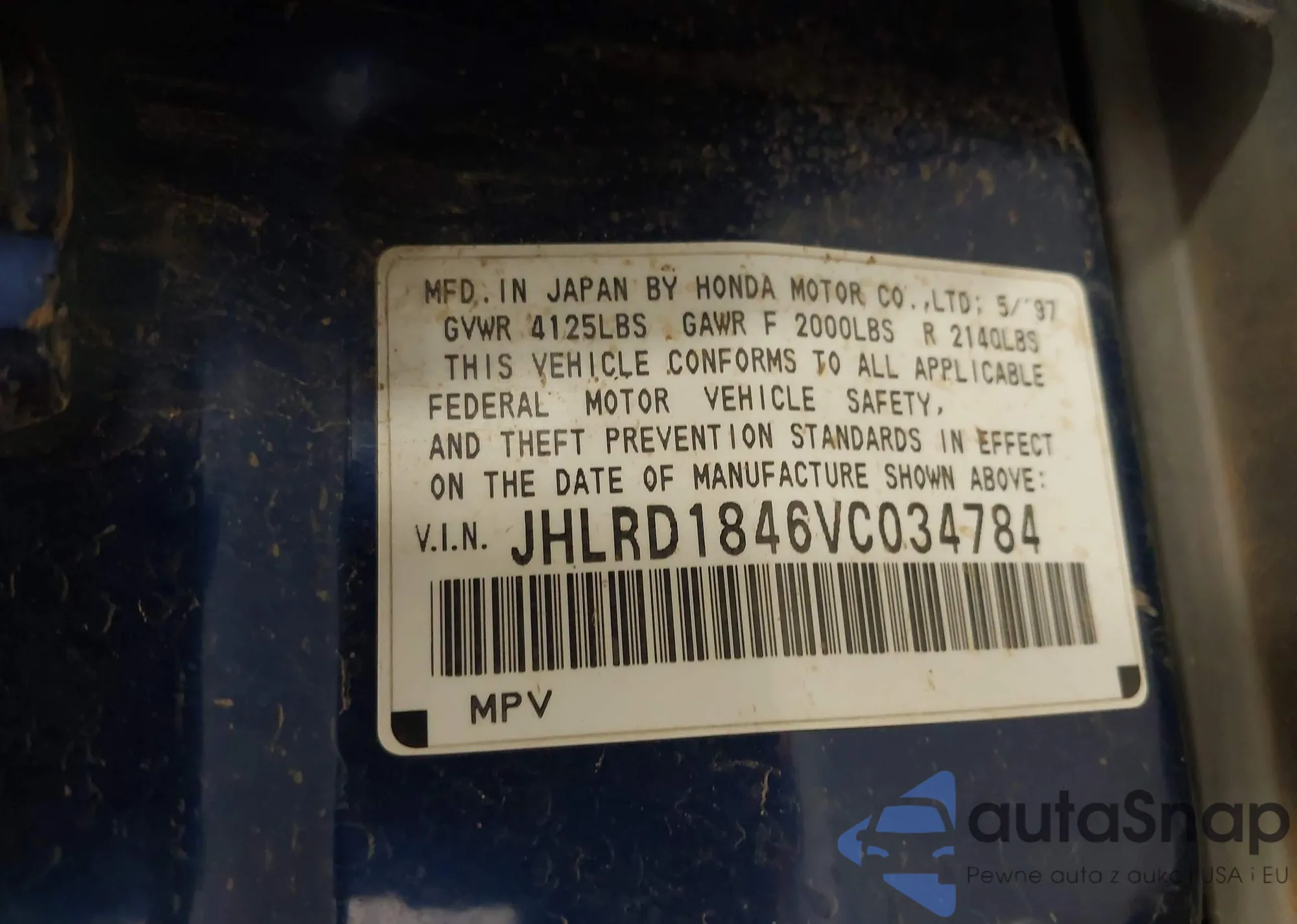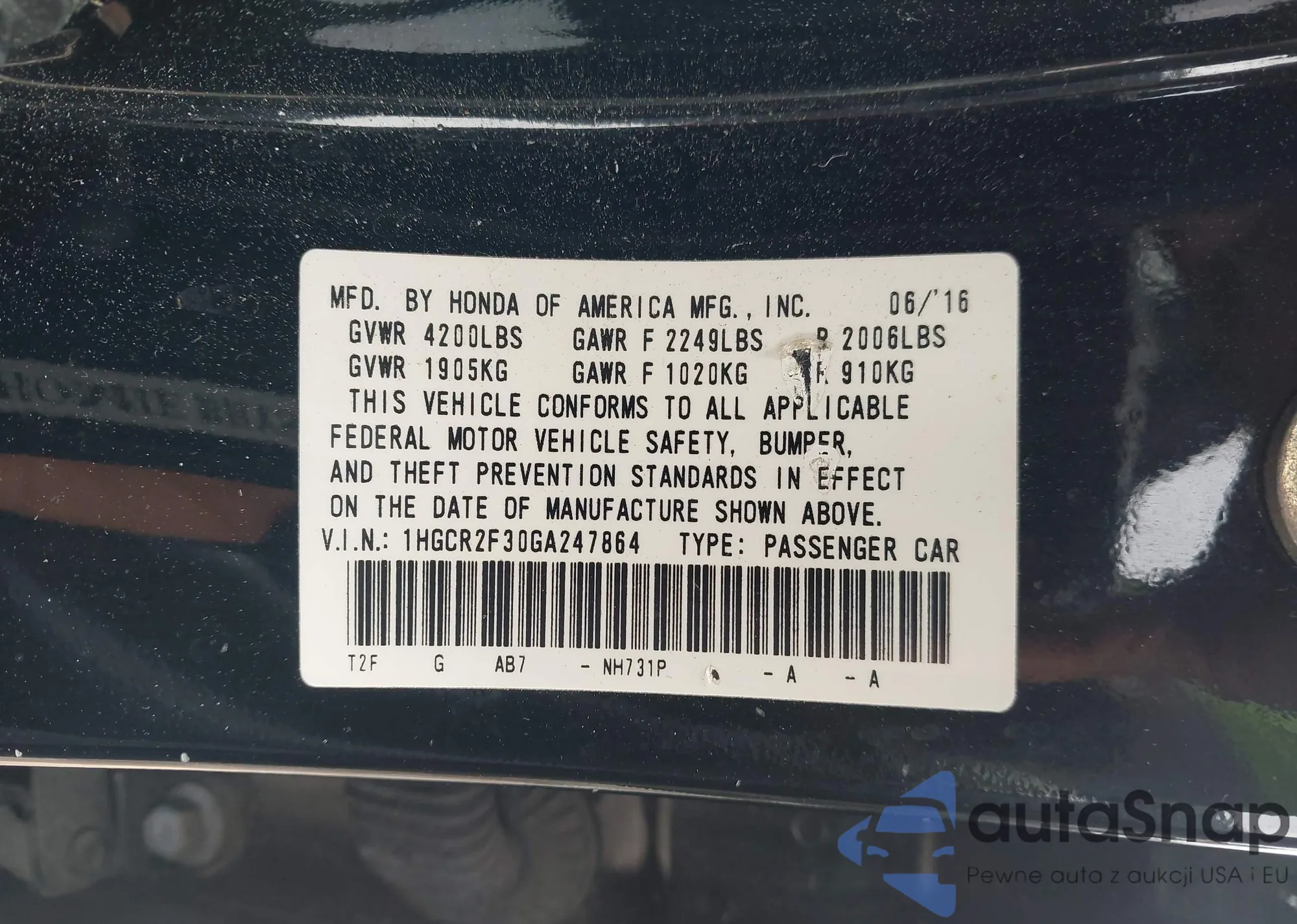 • VIN 1HGCR2F30GA247864