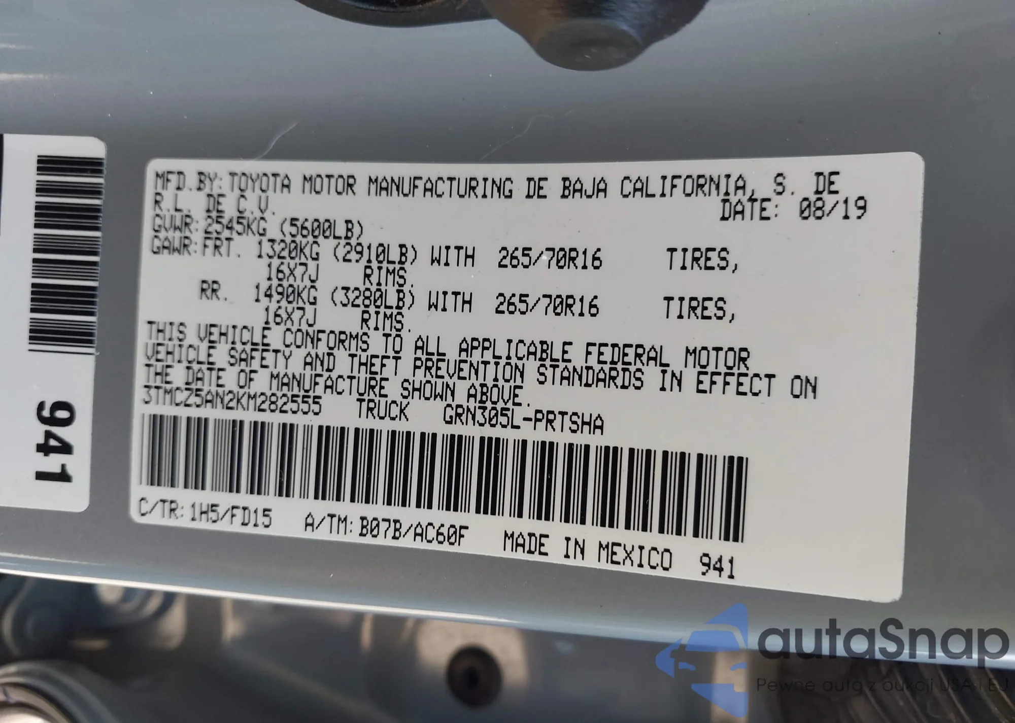 LOT: 43513210 VIN: W08AT671585047593