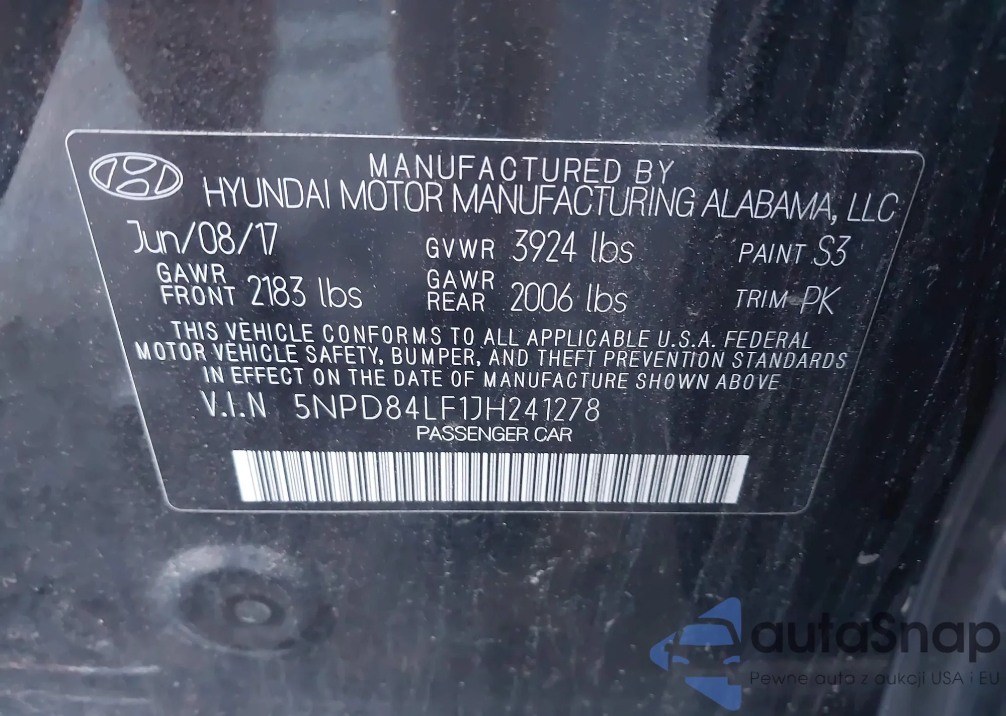 • VIN 5NPD84LF1JH241278