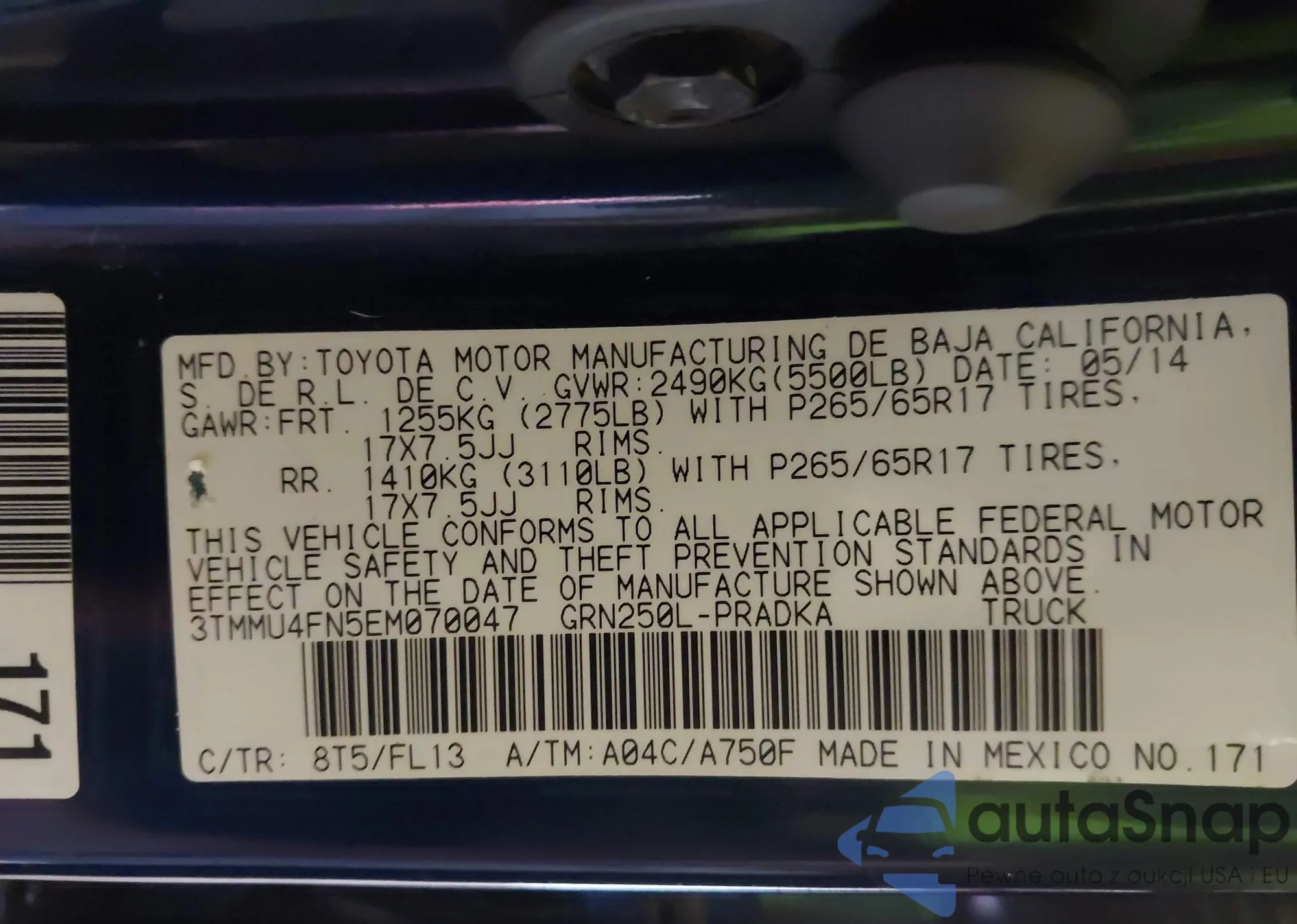 • VIN 4T1BF1FK1DU693175