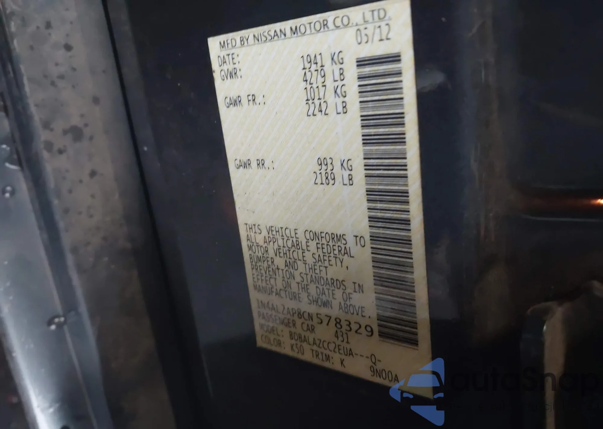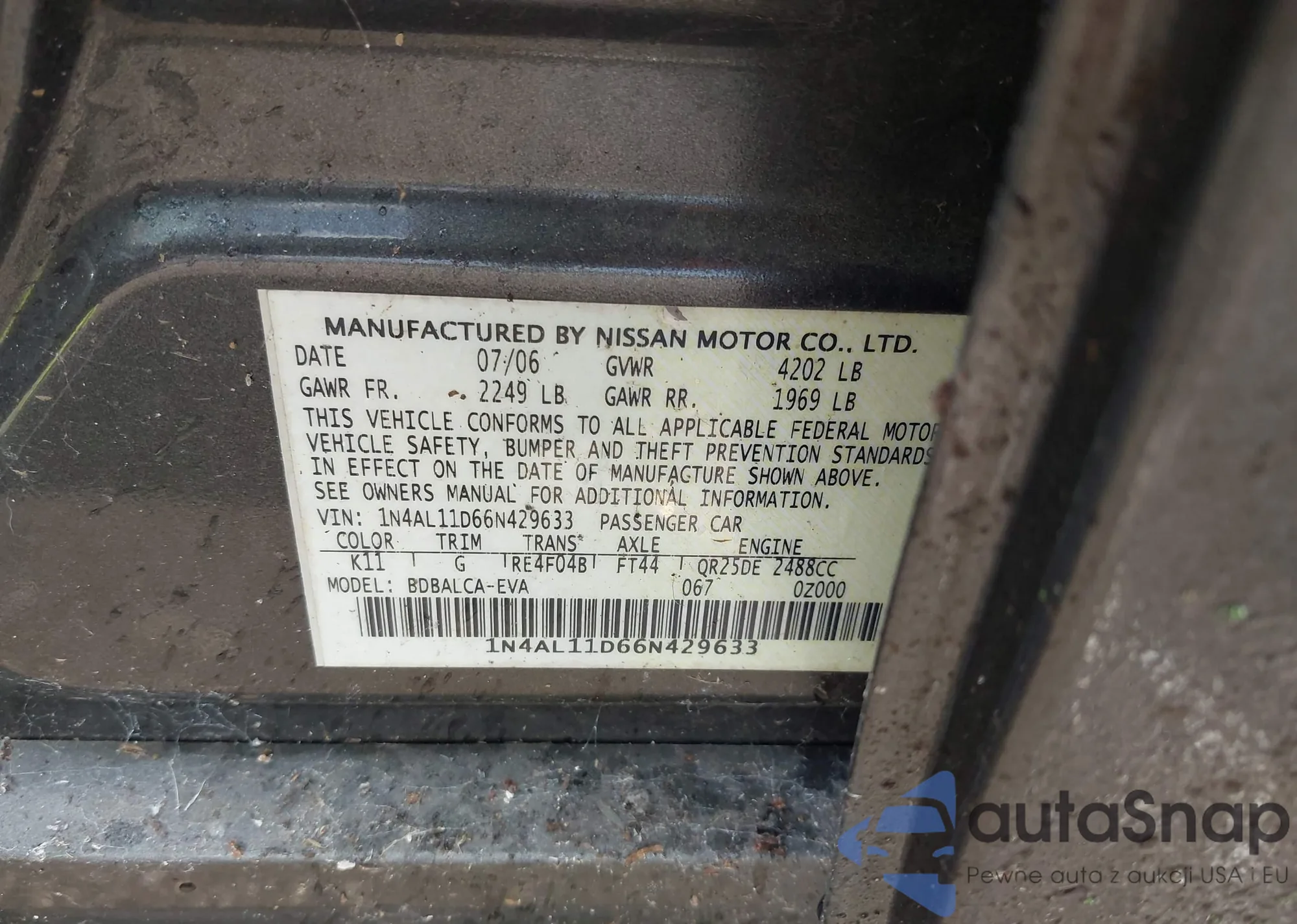 LOT: 43415948 VIN: 1N4BL4DV1MN403948