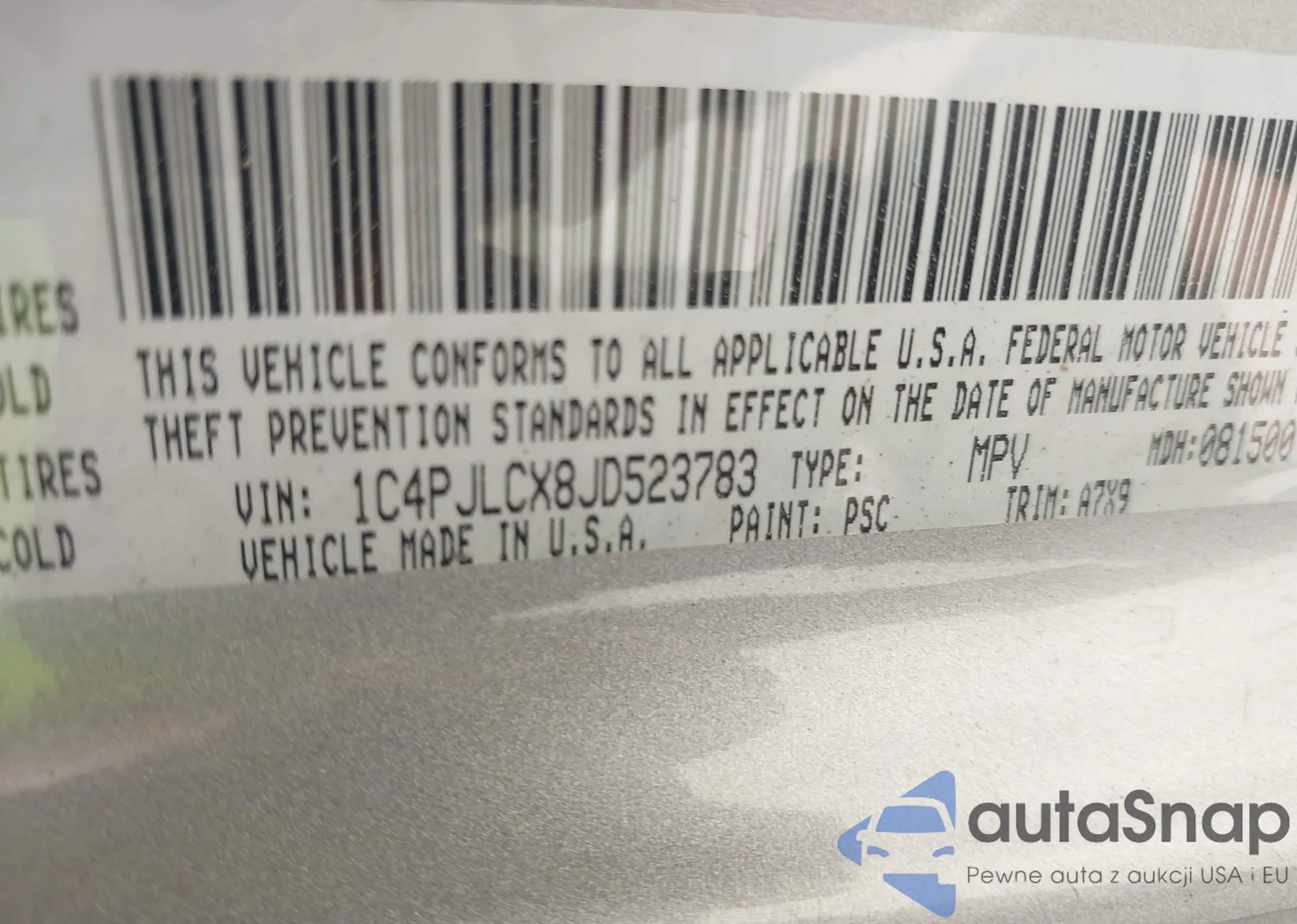 • VIN 1C4PJLCX8JD523783