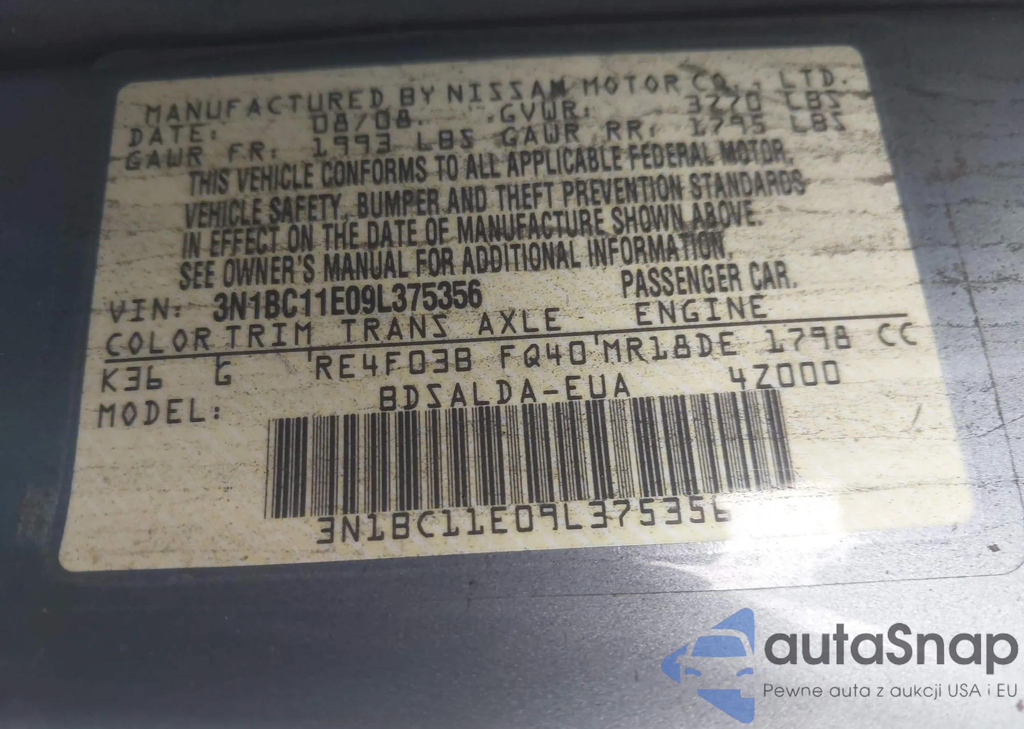 • VIN 3N1BC11E09L375356