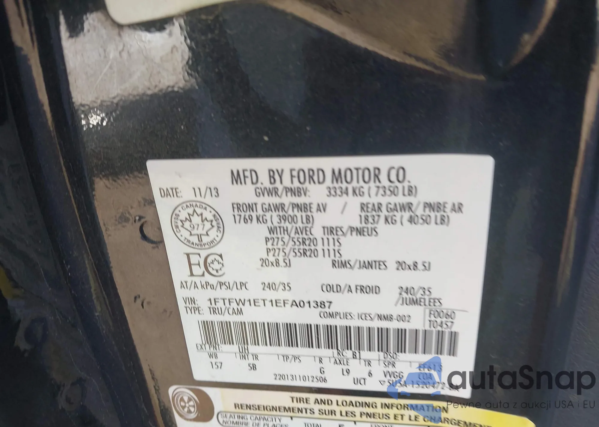 • VIN 1FTFW1ET1EFA01387