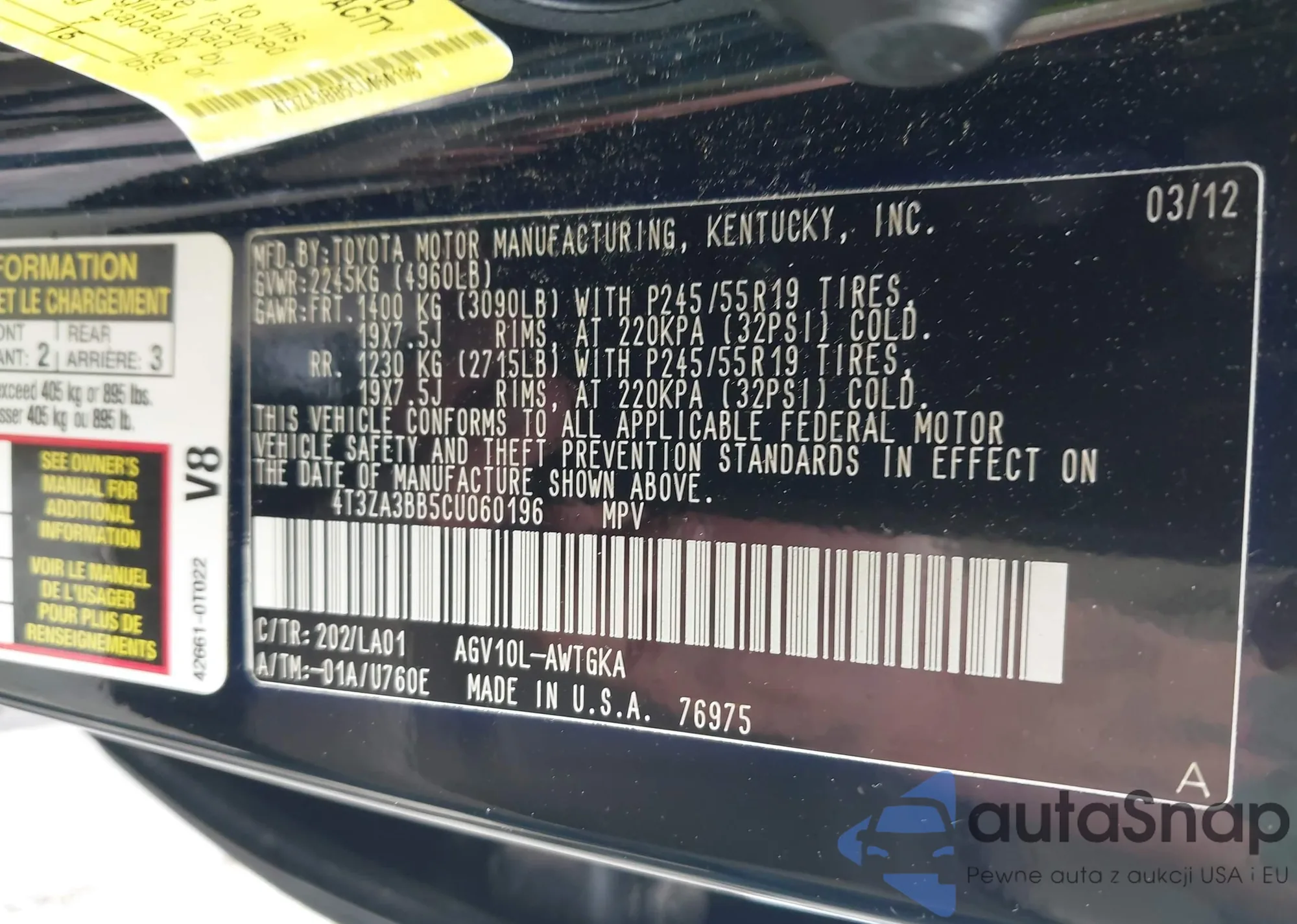 • VIN 4T3ZA3BB5CU060196
