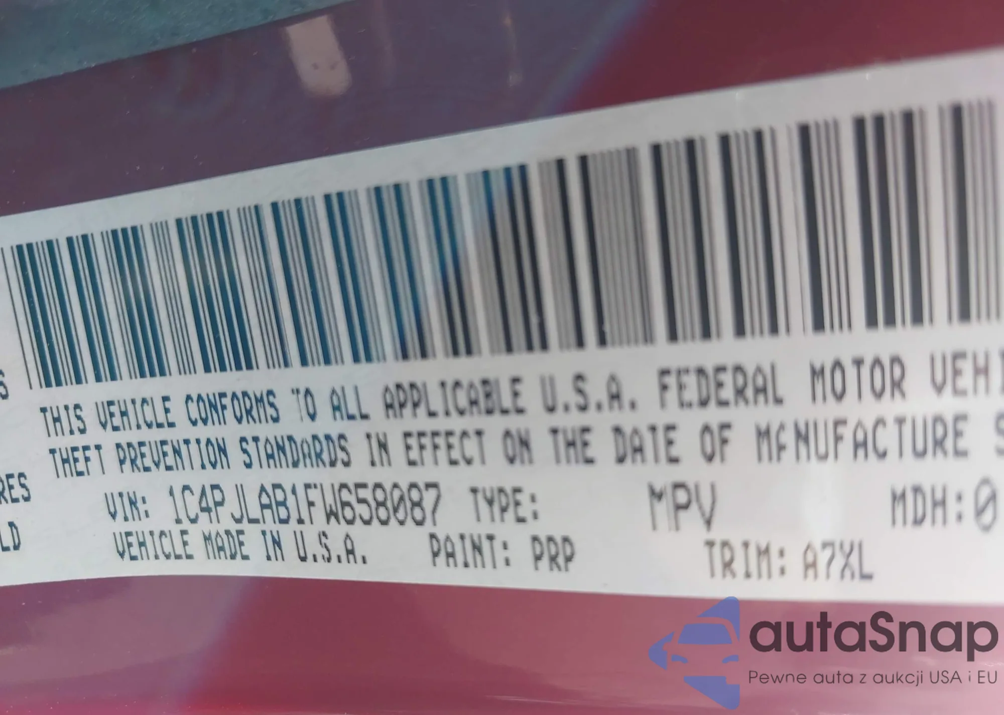 • VIN 1C4PJLAB1FW658087