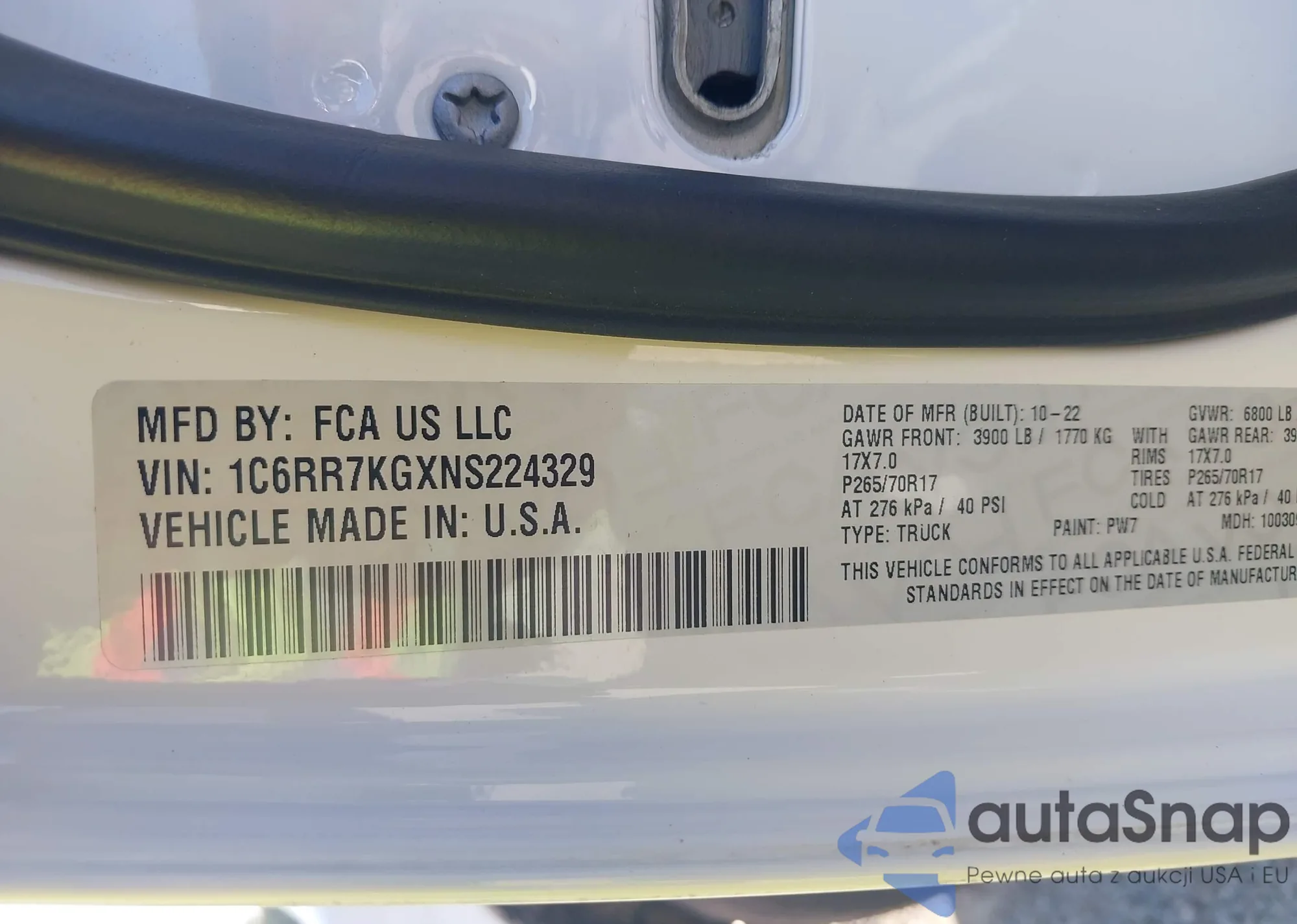 • VIN 1C6RR7KGXNS224329