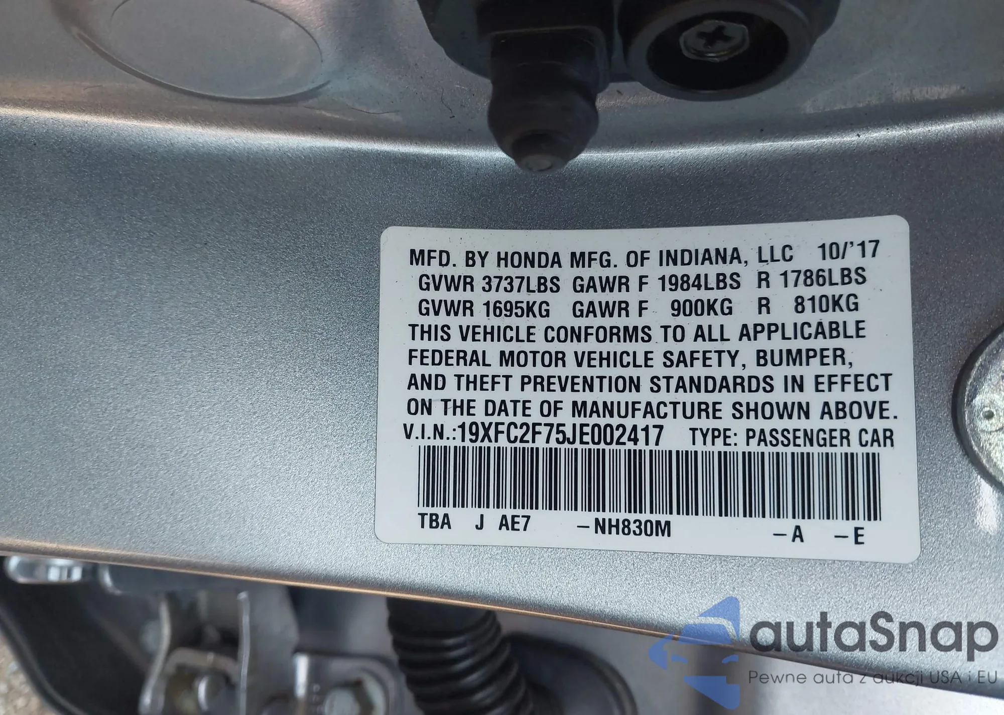 • VIN 19XFC2F75JE002417