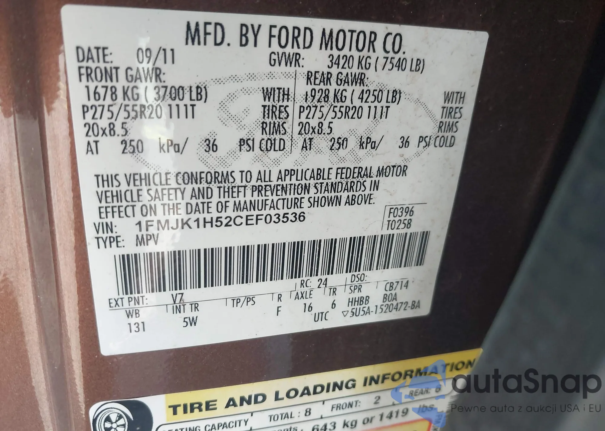• VIN 1FMJK1H52CEF03536