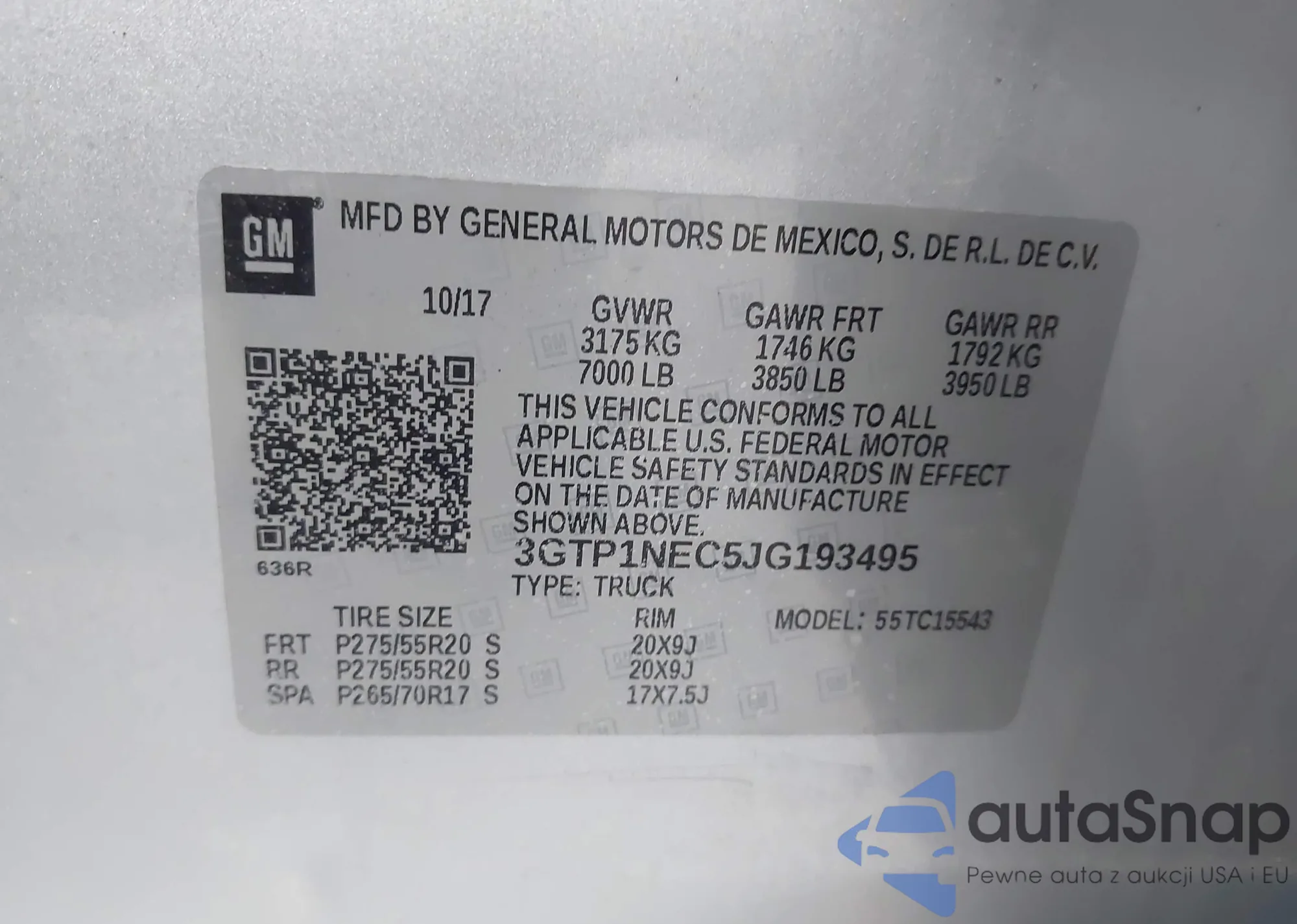 • VIN 3GTP1NEC5JG193495