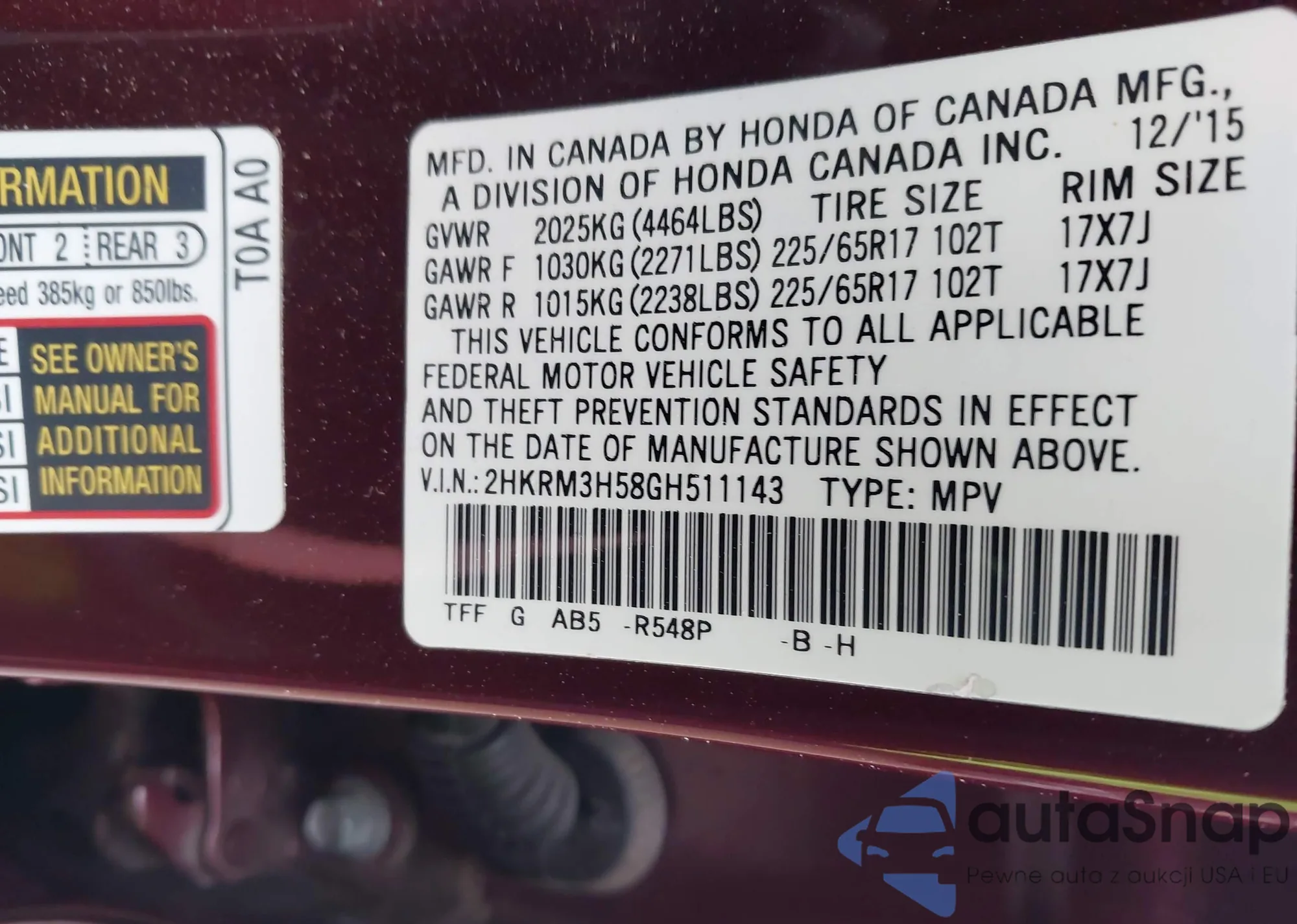 • VIN 2HKRM3H58GH511143