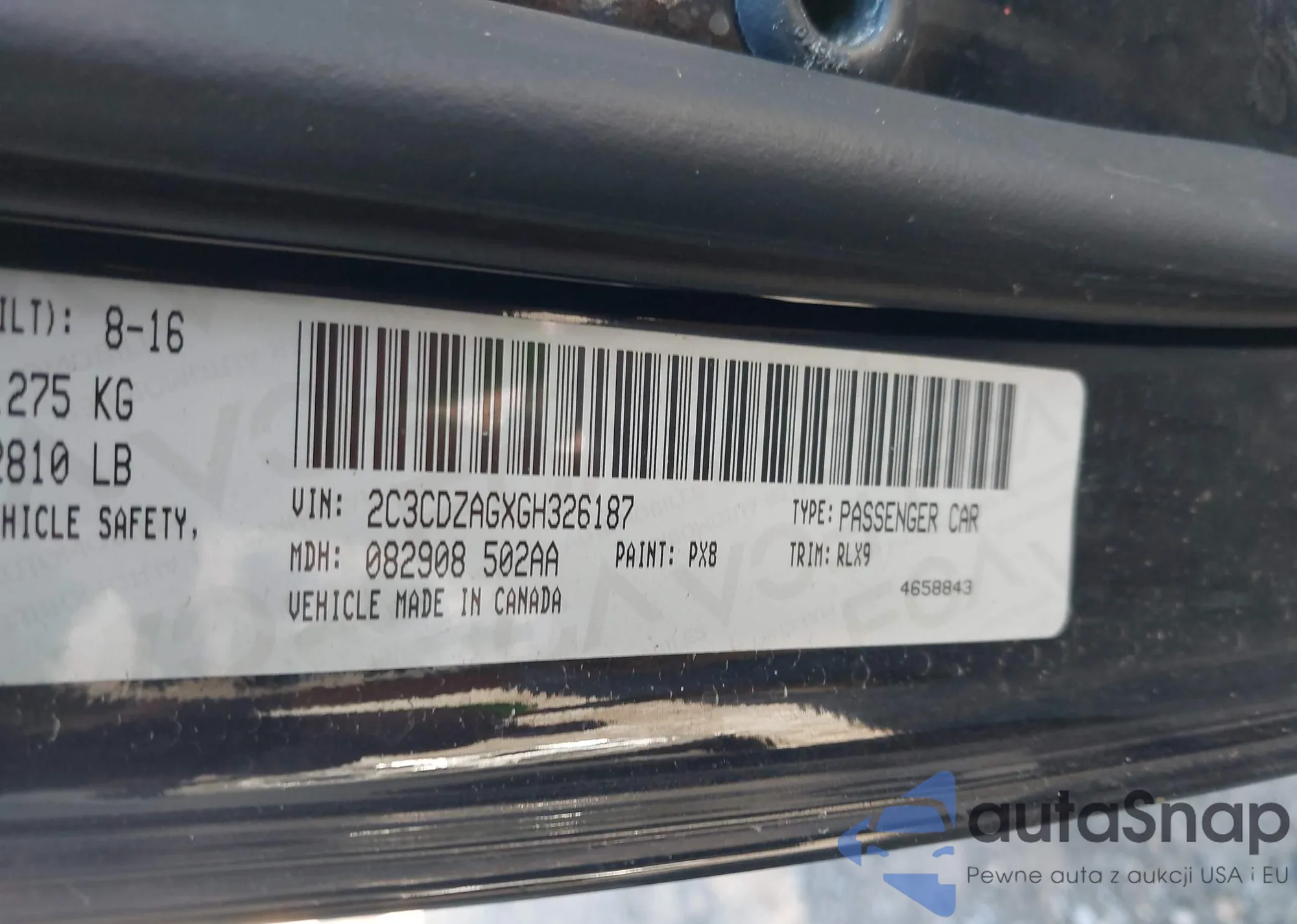 • VIN 2C3CDZAGXGH326187