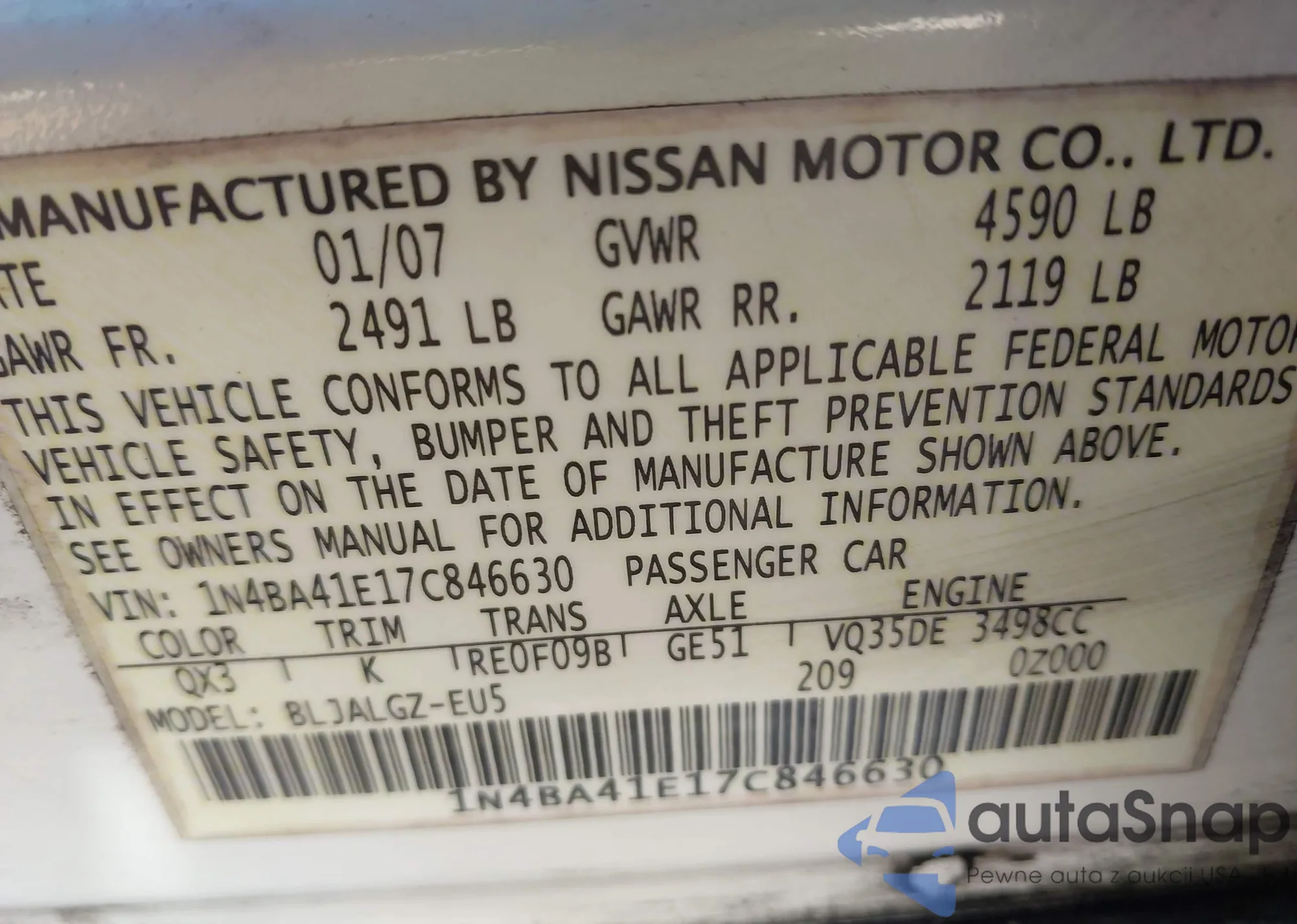 LOT: 43579247 VIN: 1N4BA41E17C846630