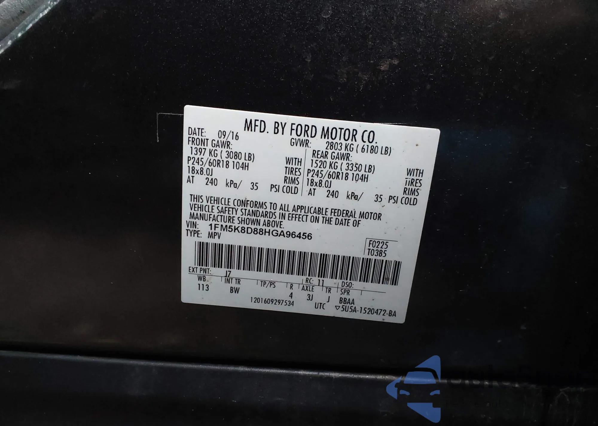 • VIN 1FM5K8D88HGA96456