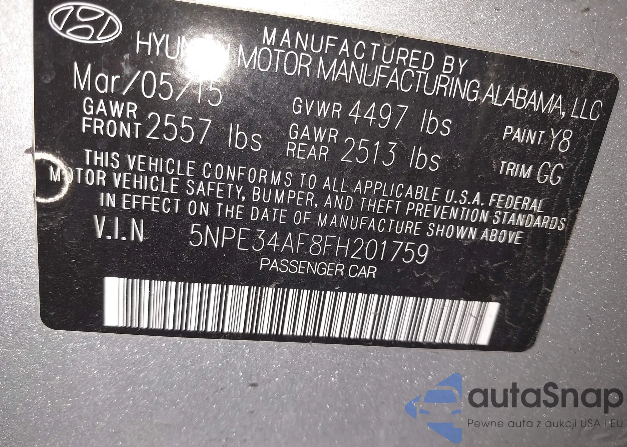 • VIN 5NPE34AF8FH201759