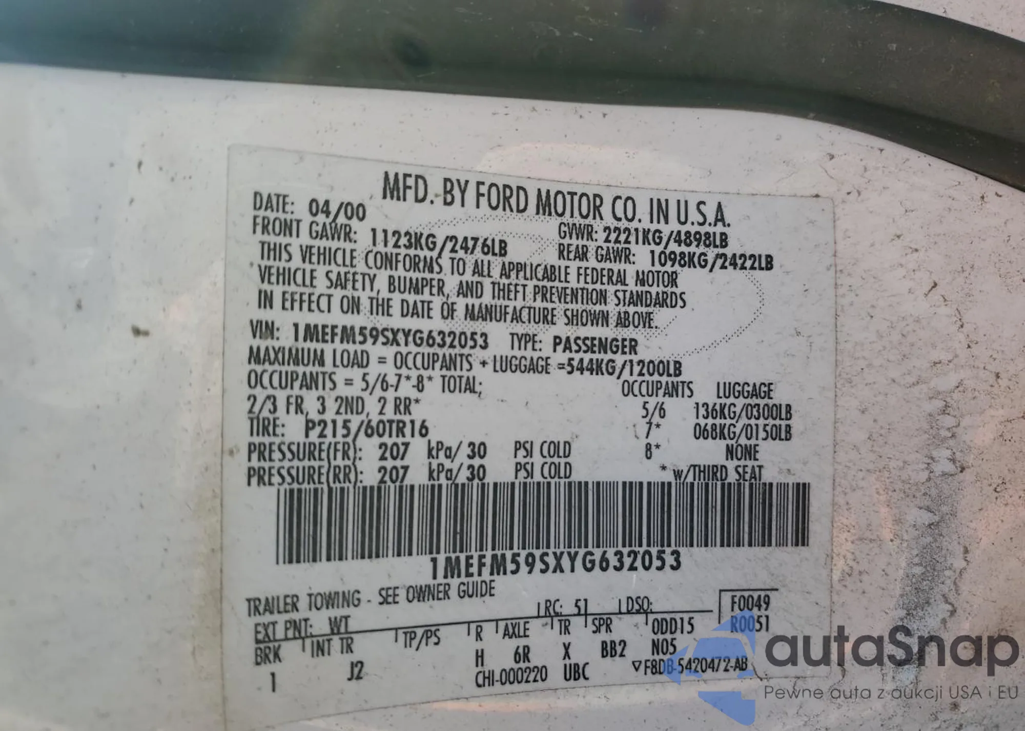 LOT: 86891975 VIN: 1FMZU77E12UB67349