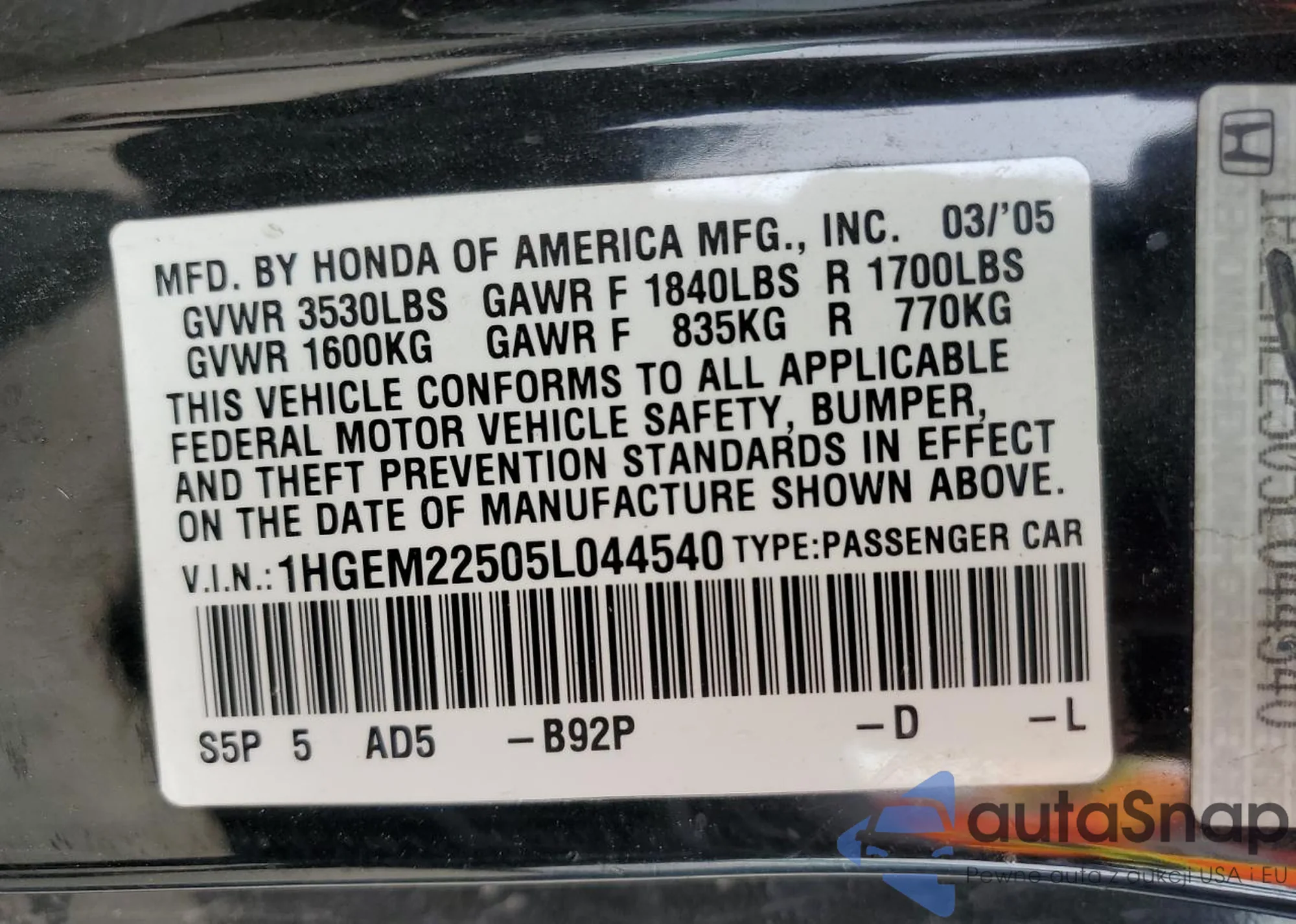 • VIN 1HGEM22505L044540