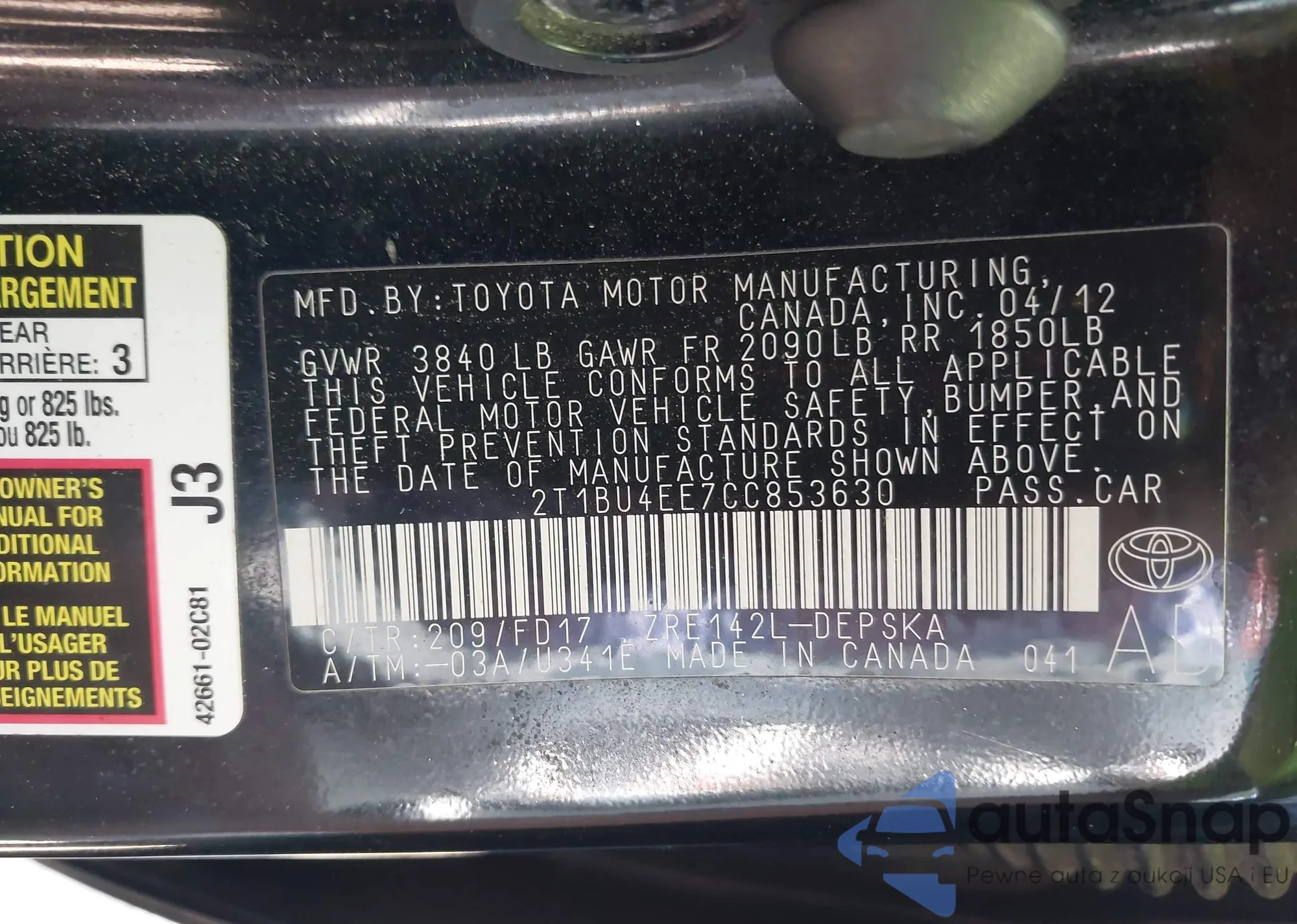 • VIN 4T1BF1FK6FU020188