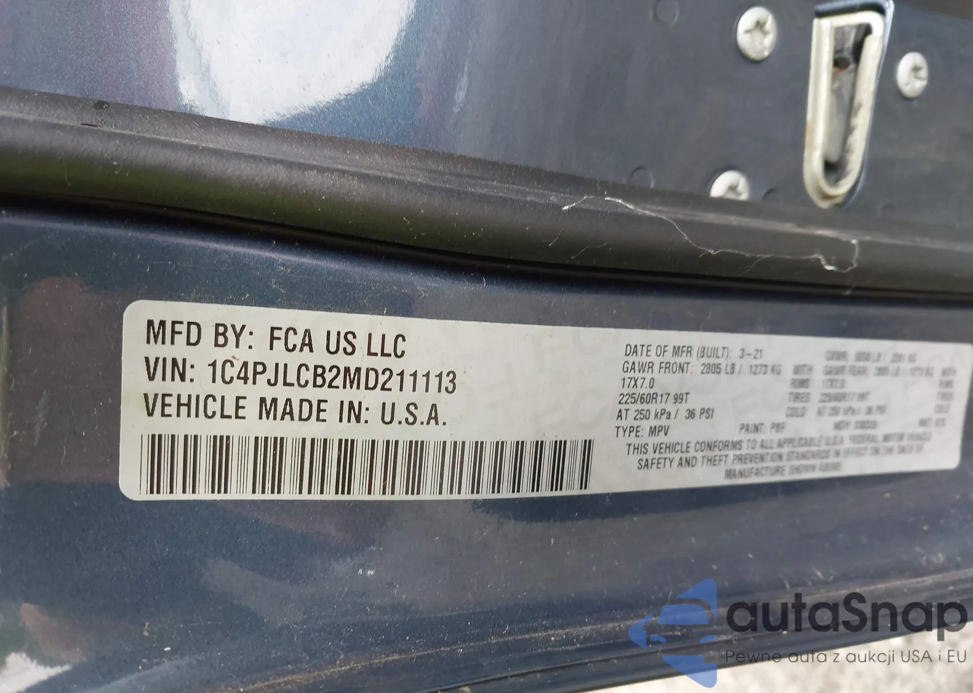 • VIN 1C4PJLCB2MD211113