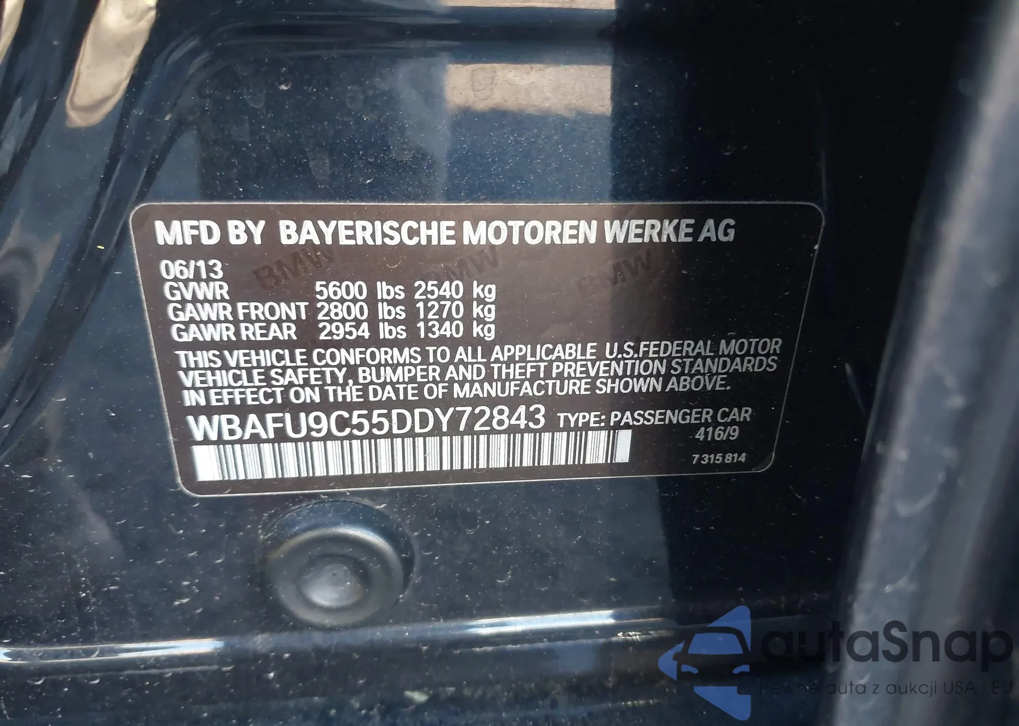 • VIN WBAFU9C55DDY72843