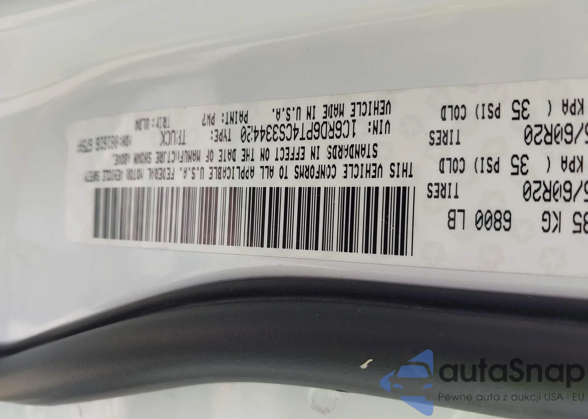 • VIN 1C6RD6PT4CS334420