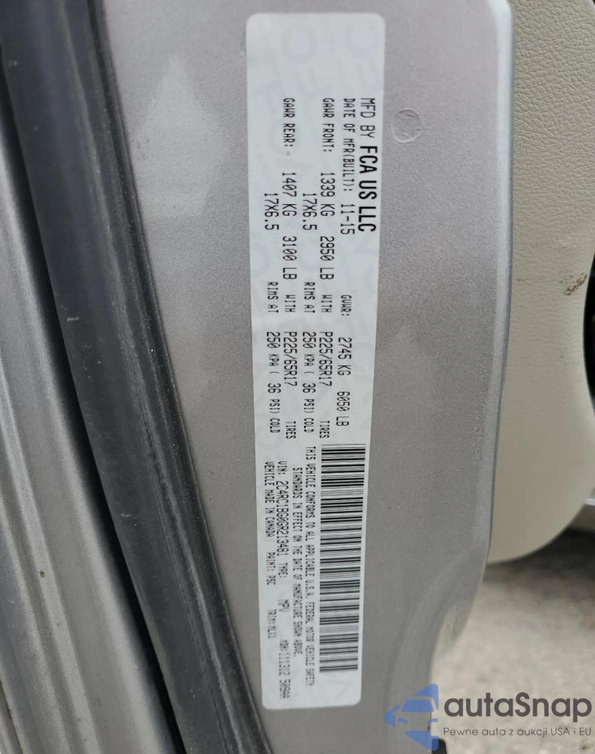 • VIN 1C4RJFCT4KC823030