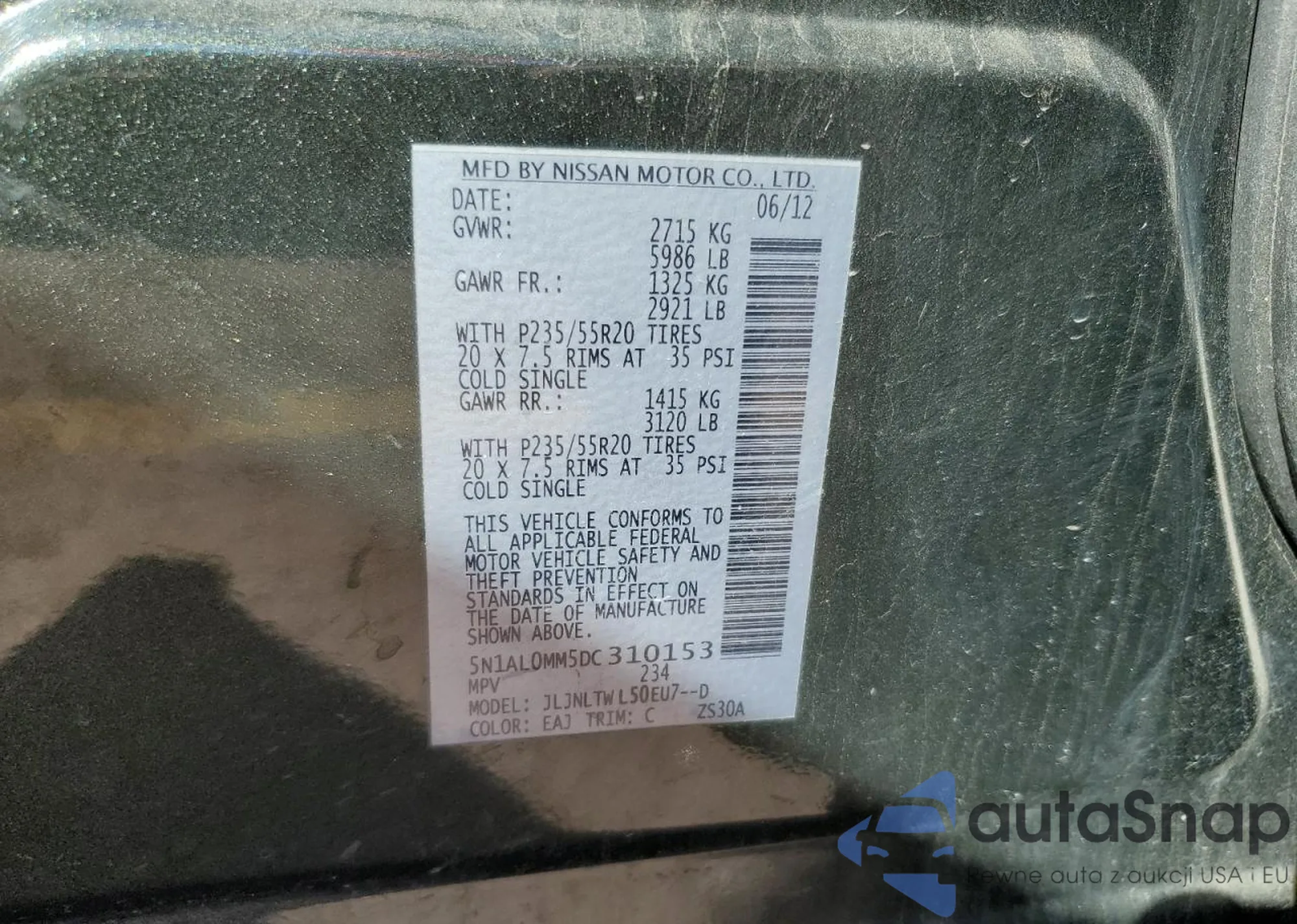 • VIN 5N1AL0MM5DC310153