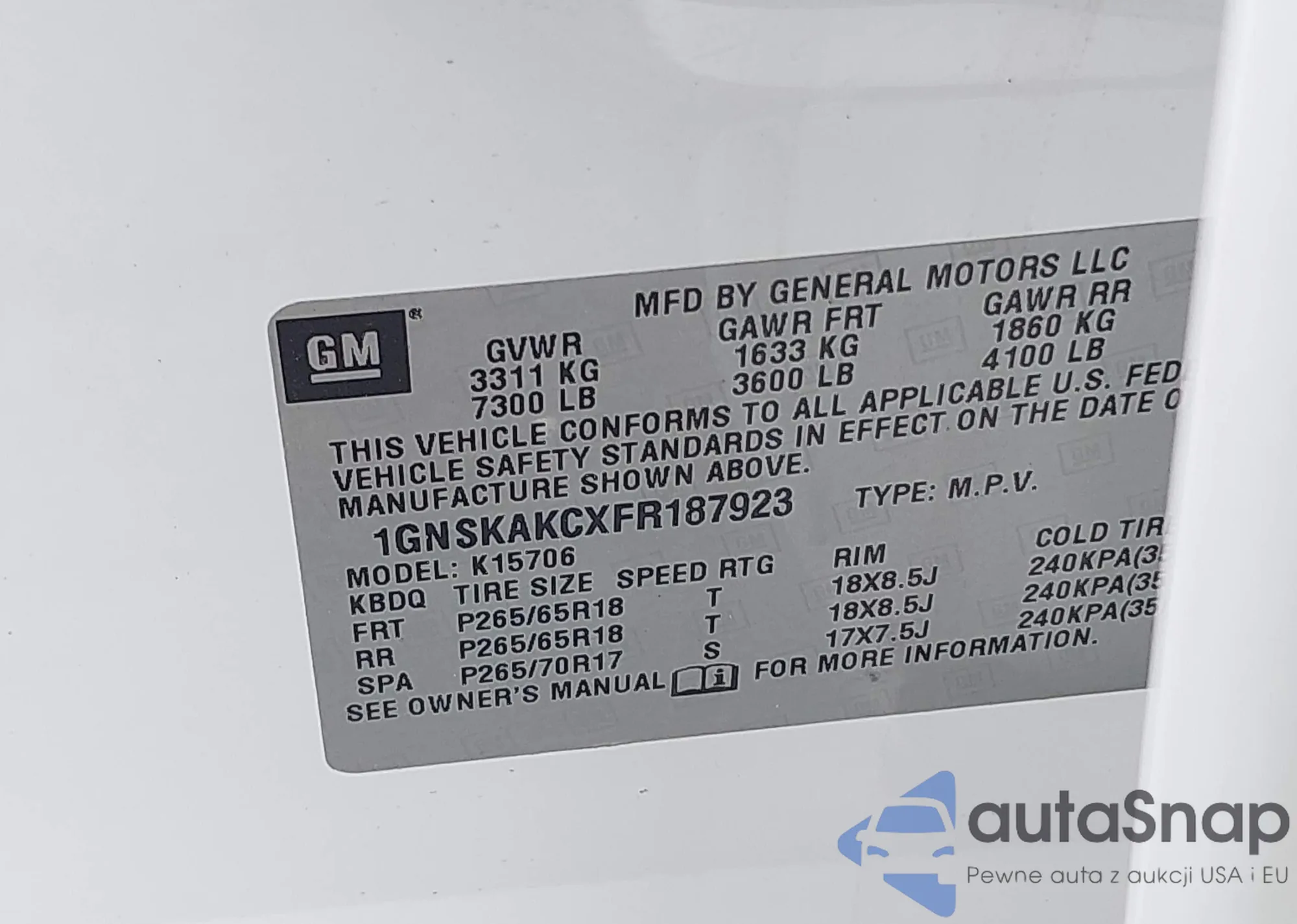 LOT: 42978018 VIN: WMWSU3C57CT543061