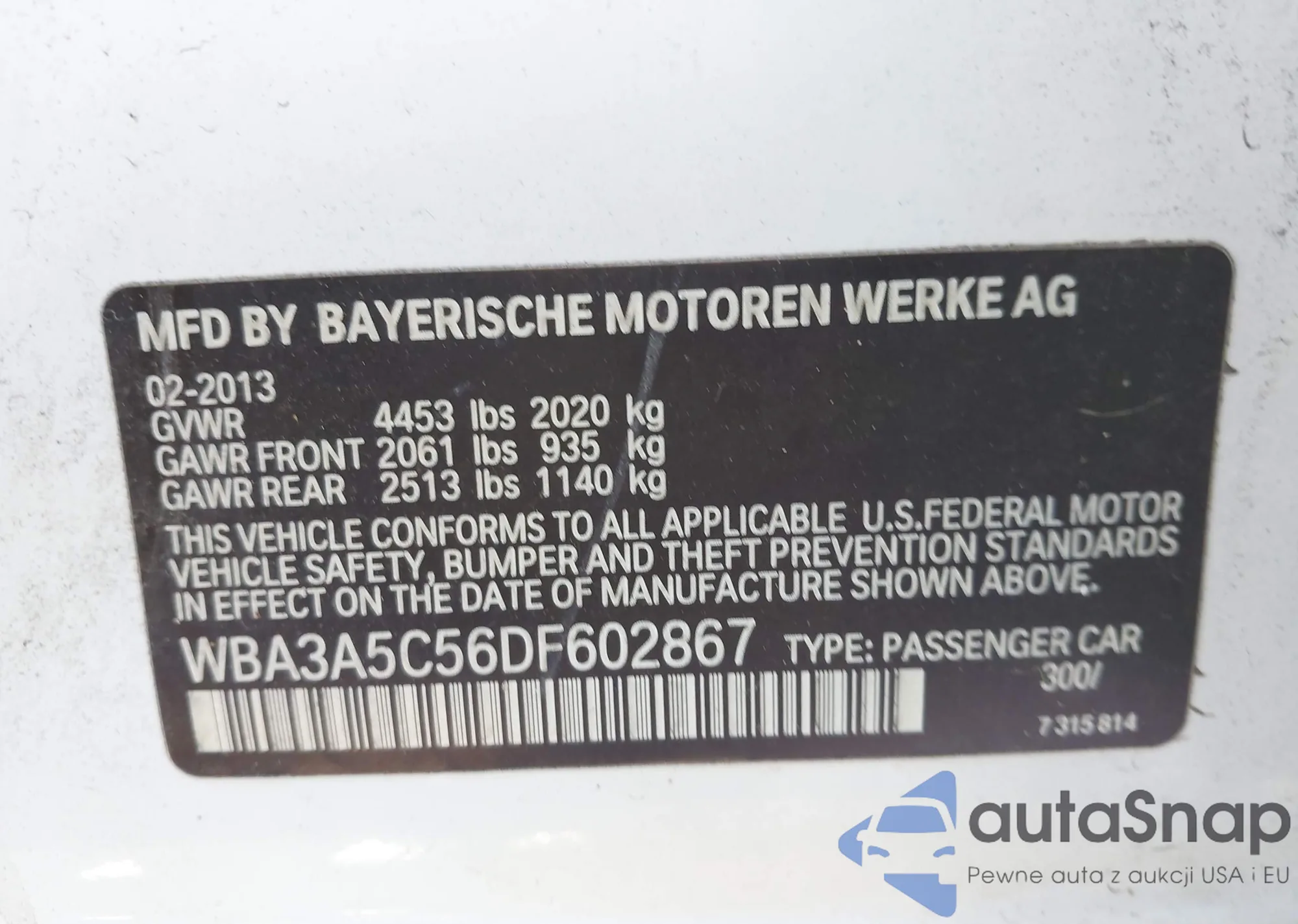 • VIN WBA3A5C56DF602867