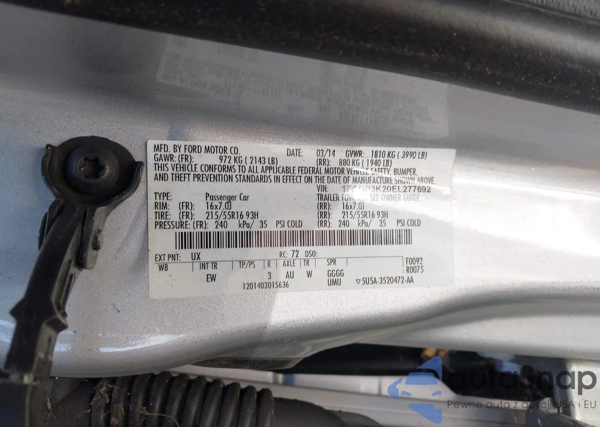 LOT: 43491992 VIN: 1FADP3K20EL277692