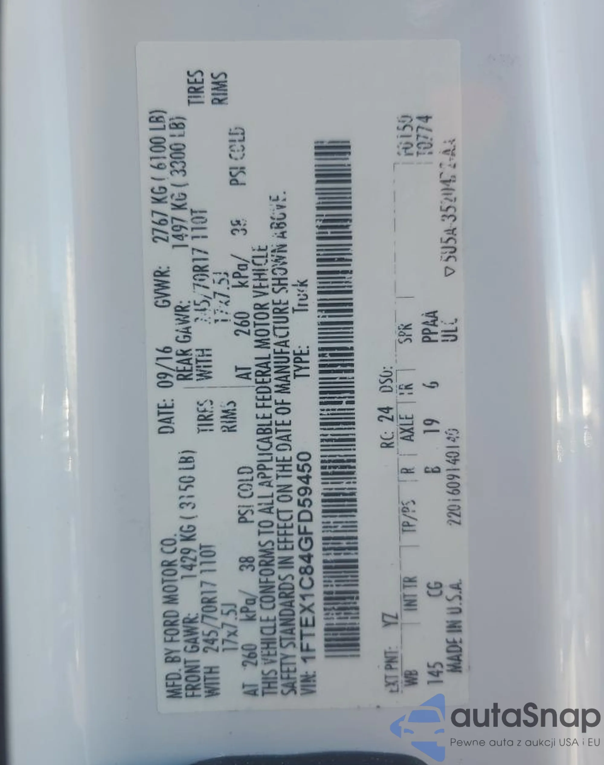 • VIN 1FTEX1C84GFD59450
