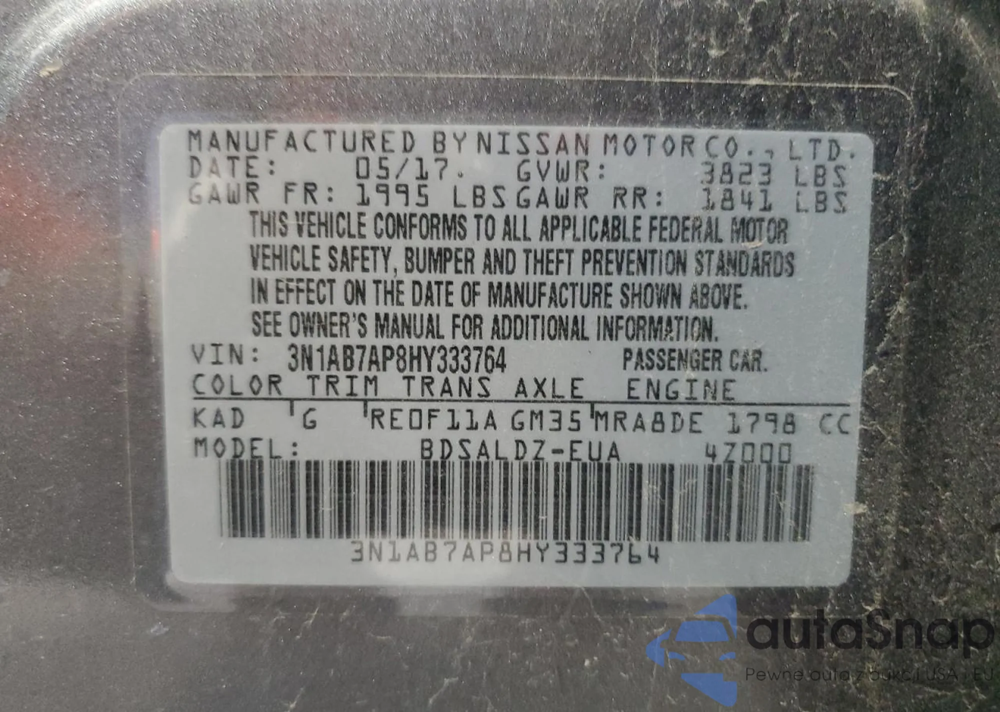 LOT: 89535985 VIN: 1N4BL4DVXRN312023