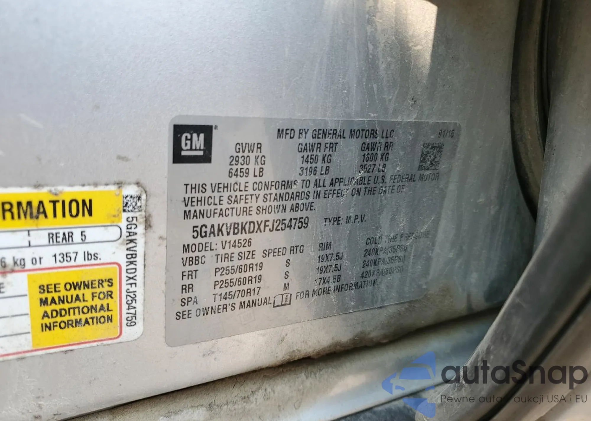 • VIN 5GAKVBKDXFJ254759