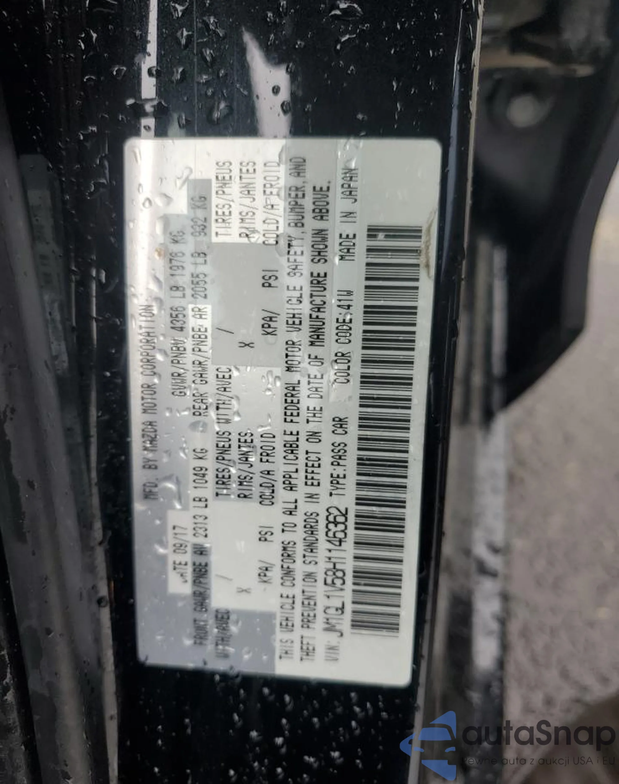 • VIN 5J6RS6H93SL002764
