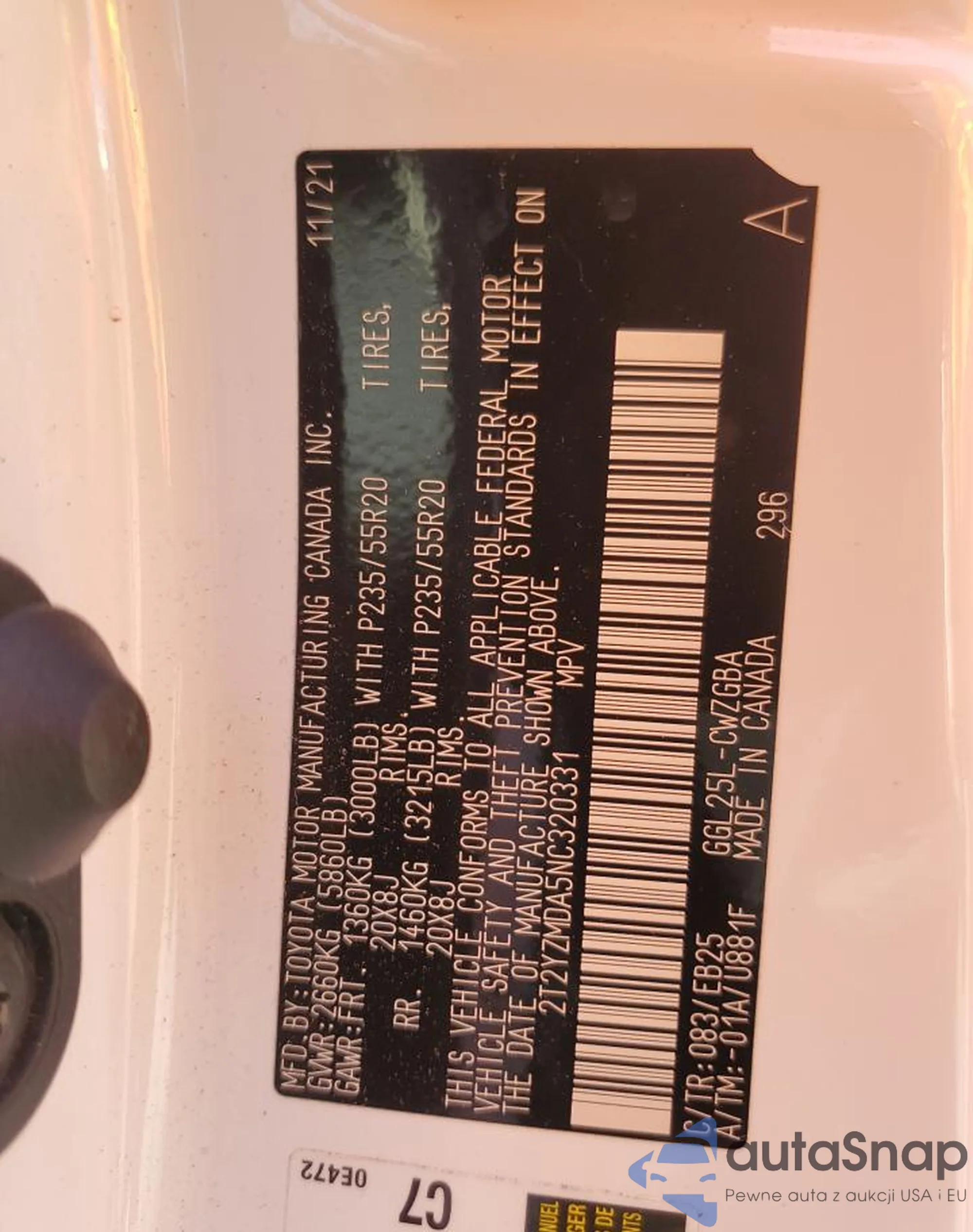 • VIN 2T2YZMDA5NC320331