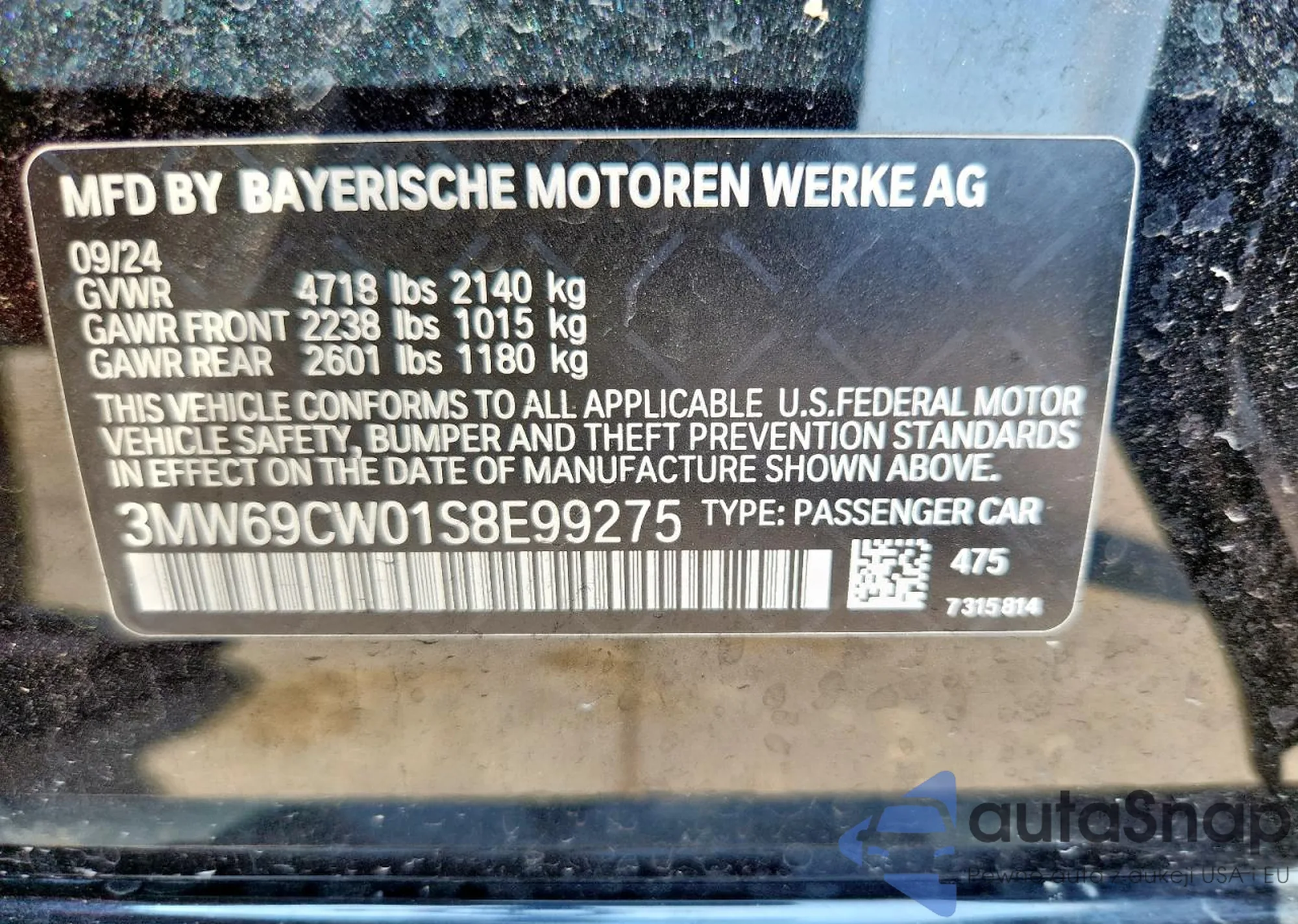 LOT: 89450135 VIN: WBAAV334X1EE76332