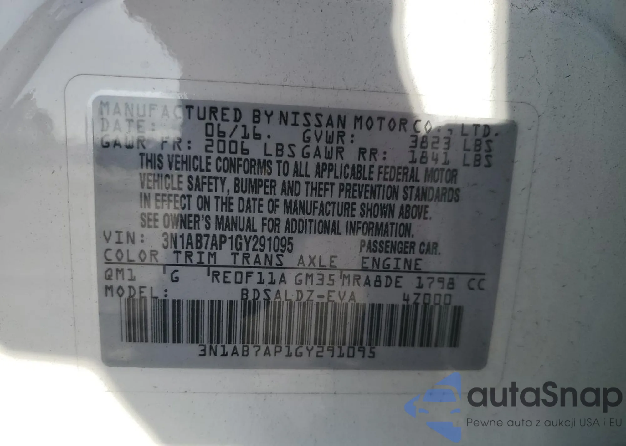 • VIN 3N1AB7AP1GY291095