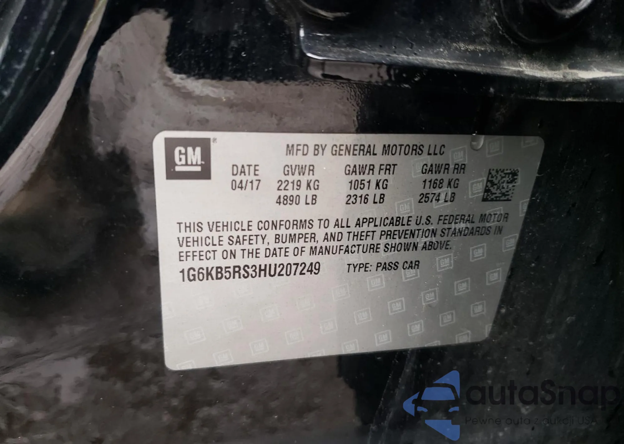 • VIN KL7CJKSB5MB319454