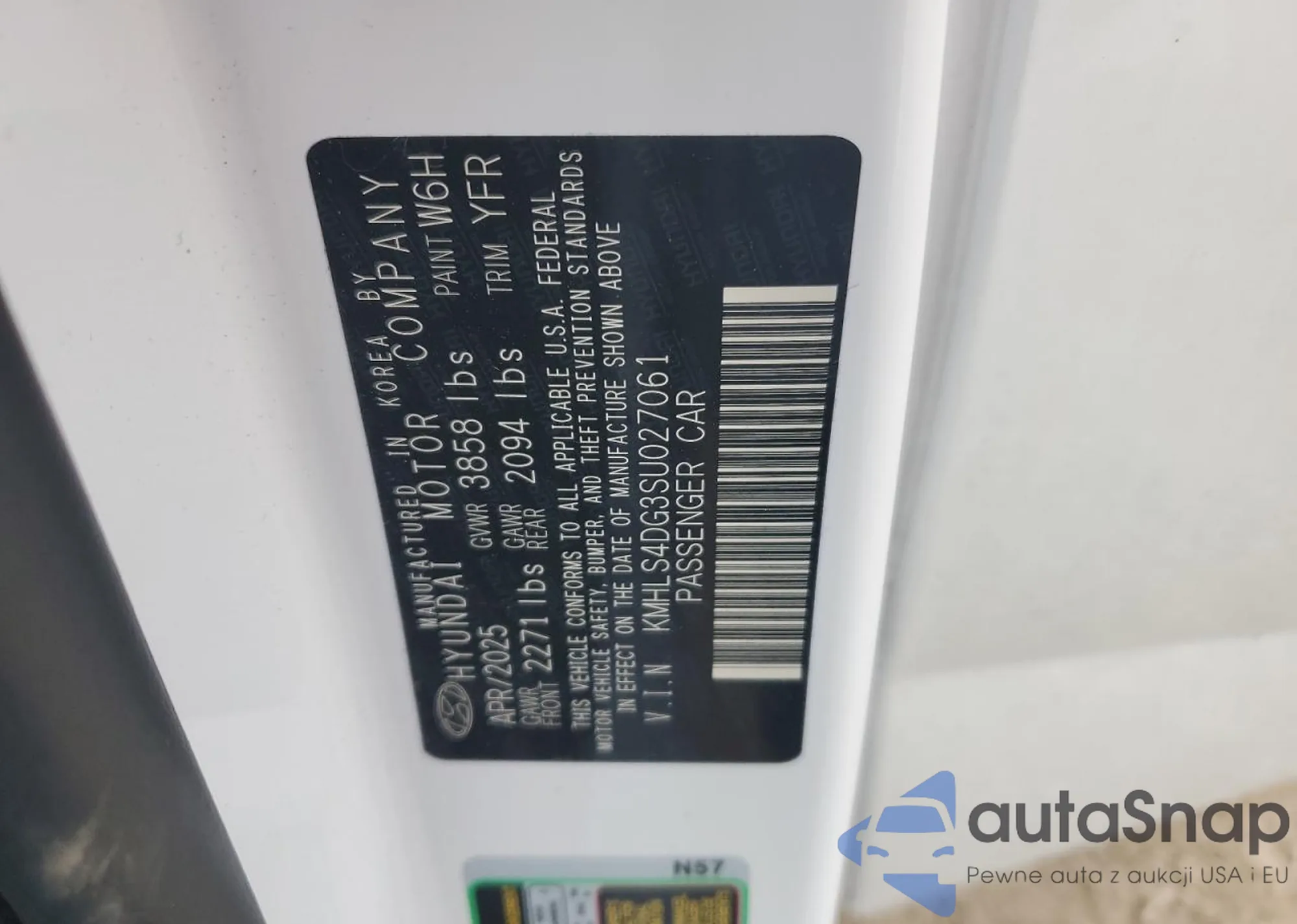 • VIN KMHLS4DG3SU027061